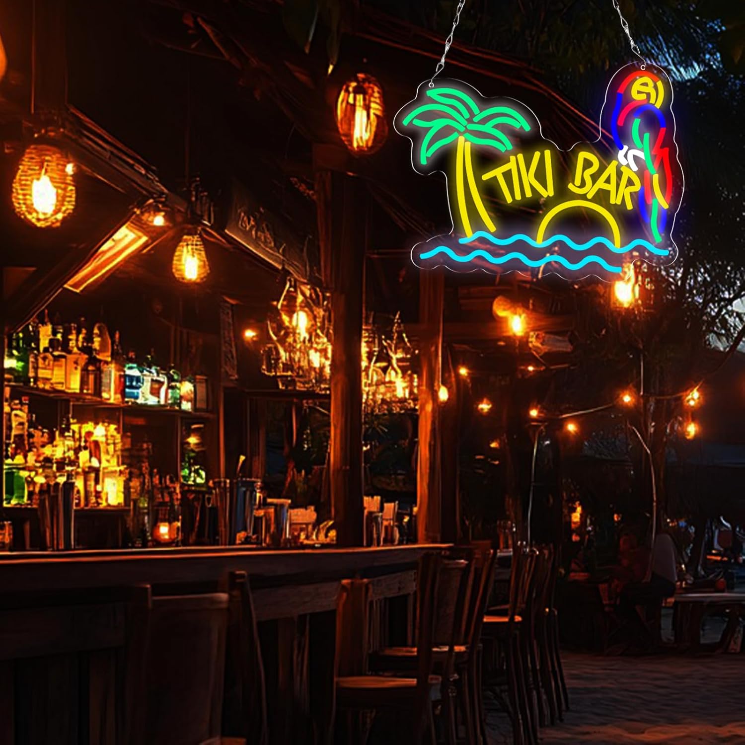 - ๐ฝ๐ฐ๐ฉ๐น๐จ๐ต๐ป ๐ซ๐ฌ๐บ๐ฐ๐ฎ๐ต: Colorful LED neon style tiki bar sign features palm trees, ocean waves and parrots in bright tropical colors, perfect for beach themed decor.