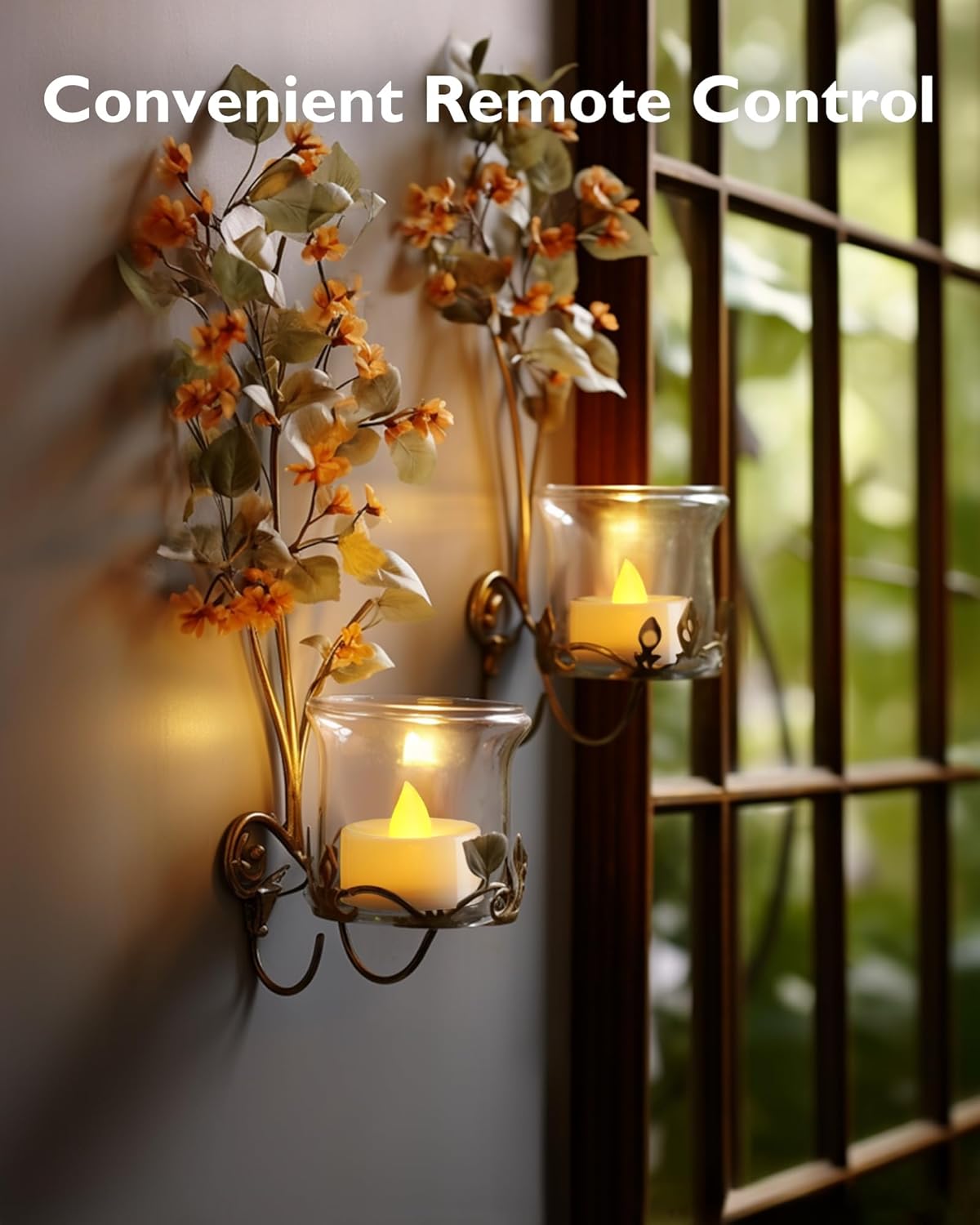 - ENJOY THE CONVENIENCE: With 10-key remote control, saves the hassle of manually turning tea light candles on/off, eliminates the need to reach high places. 2/4/6/8H timer function automatically lights and extinguishes them daily, ensuring you never come home to darkness