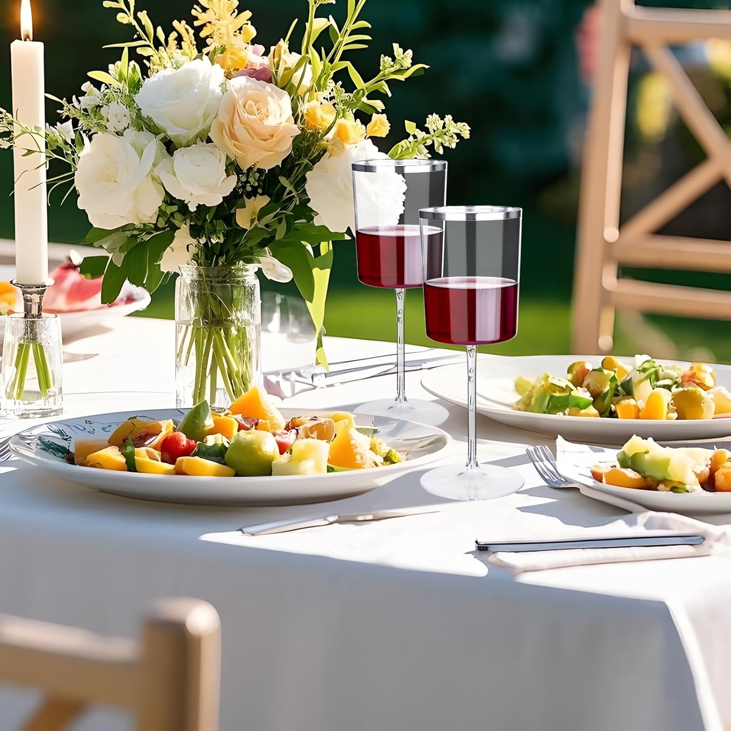 Ciaell 12 Pack Plastic Wine Glasses - 10 Oz Plastic Wine Glasses with Stem - Square Silver Disposable Stemmed Glass for Parties & Weddings & Outdoors