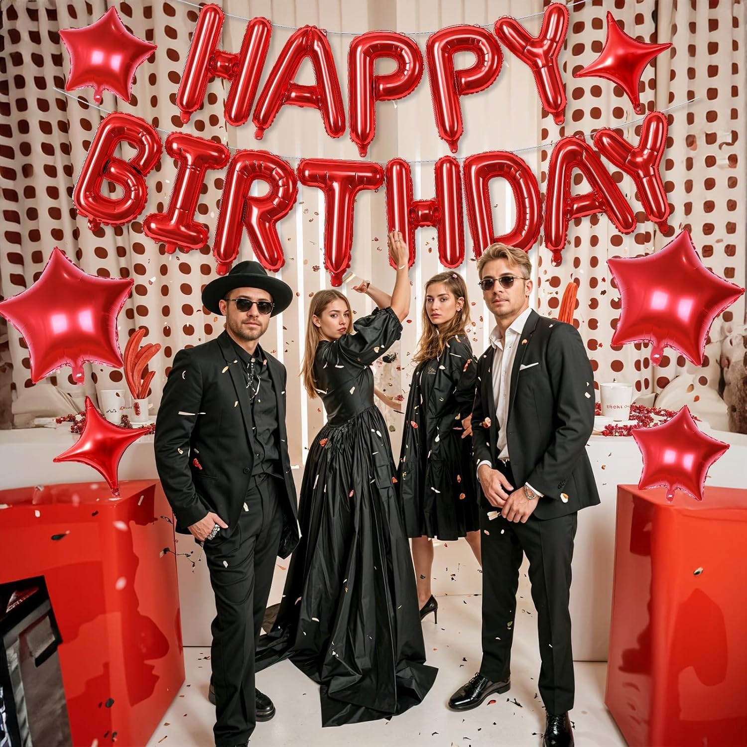 • VALUABLE PARTY DECORATION SET – Create an unforgettable birthday celebration with our Happy Birthday Balloons Banner set! Includes a 16-inch red Mylar Foil Letter Balloons set, 4 red star balloons, plus essential accessories like a ribbon, glue dots, and a straw for easy setup. Everything you need for a stylish and hassle-free party!
