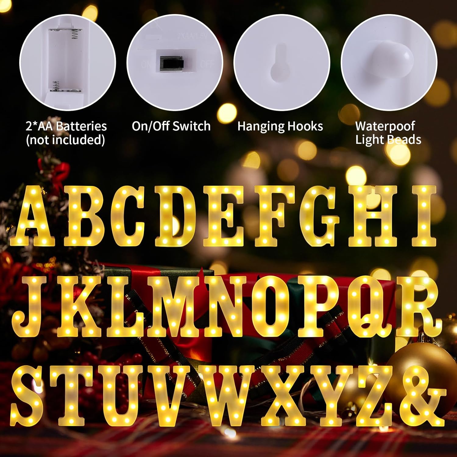 - Complete Set of LED Letters – Includes 27 alphabetic character lights (A–Z and &), allowing you to create any combination like BABY, MR & MRS, MARRY ME, GRAD, BAR, and more.