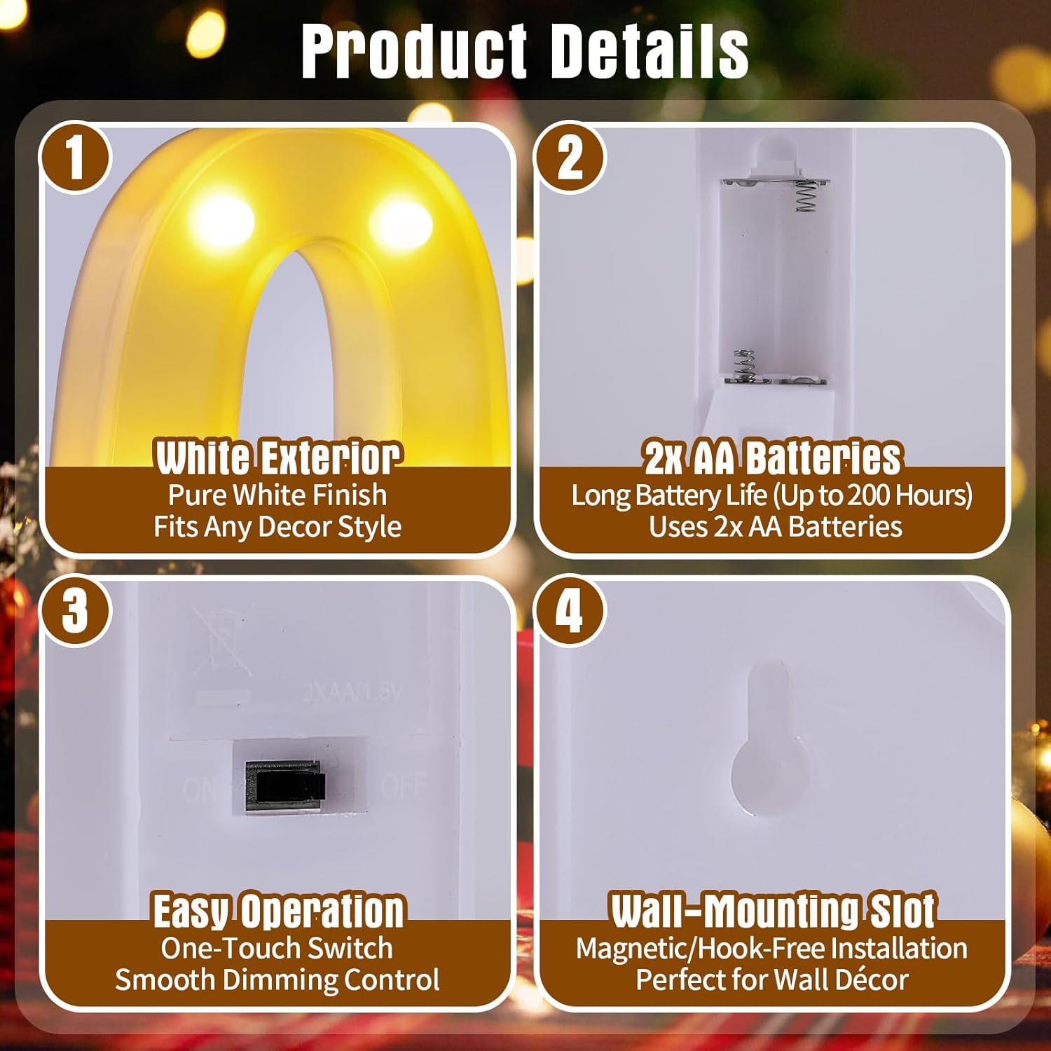 - Durable Plastic Construction – Each letter is made of plastic and powered by 2 AA batteries (not included). Designed with a keyhole slot on the back for easy hanging, they can be mounted on walls, displayed on mantels, or placed on a reception table to brighten up your event or celebration.