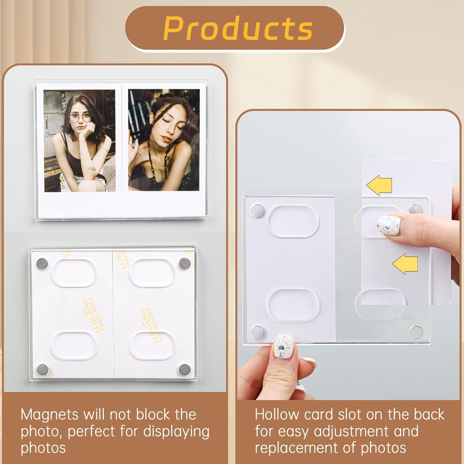 - 2 Pictures Collage: 6 pieces of acrylic magnetic collage picture frames; Each clear photo frame has 2 positions to show your mini 2x3" photos, the quantity is enough for your daily use needs