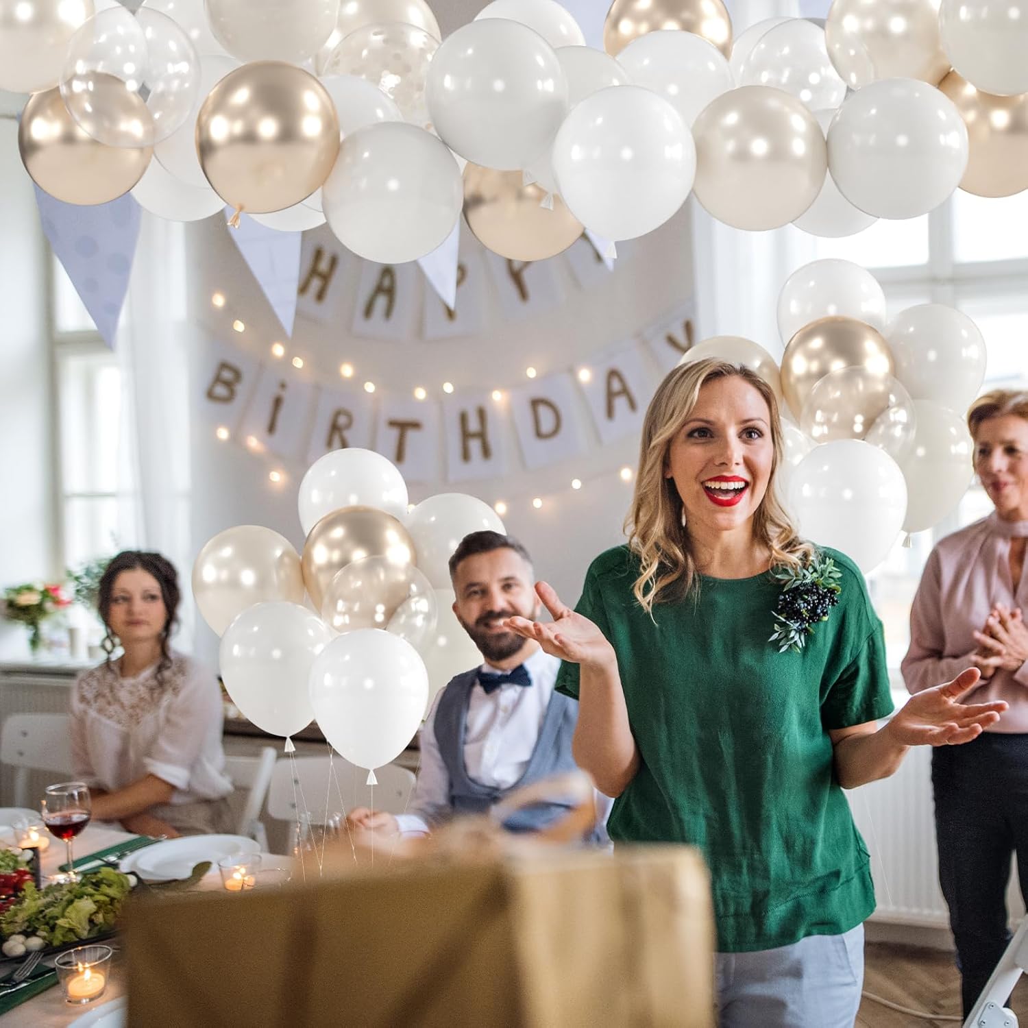 - Perfect Party Balloons Decorations : You can use these white and gold balloons to make balloon arch, balloon column, balloon flower bouquet for birthday, wedding, gender reveals, class of 2025 grads, anniversary, retirement, bachelorette, bridal shower, baby shower party decorations.