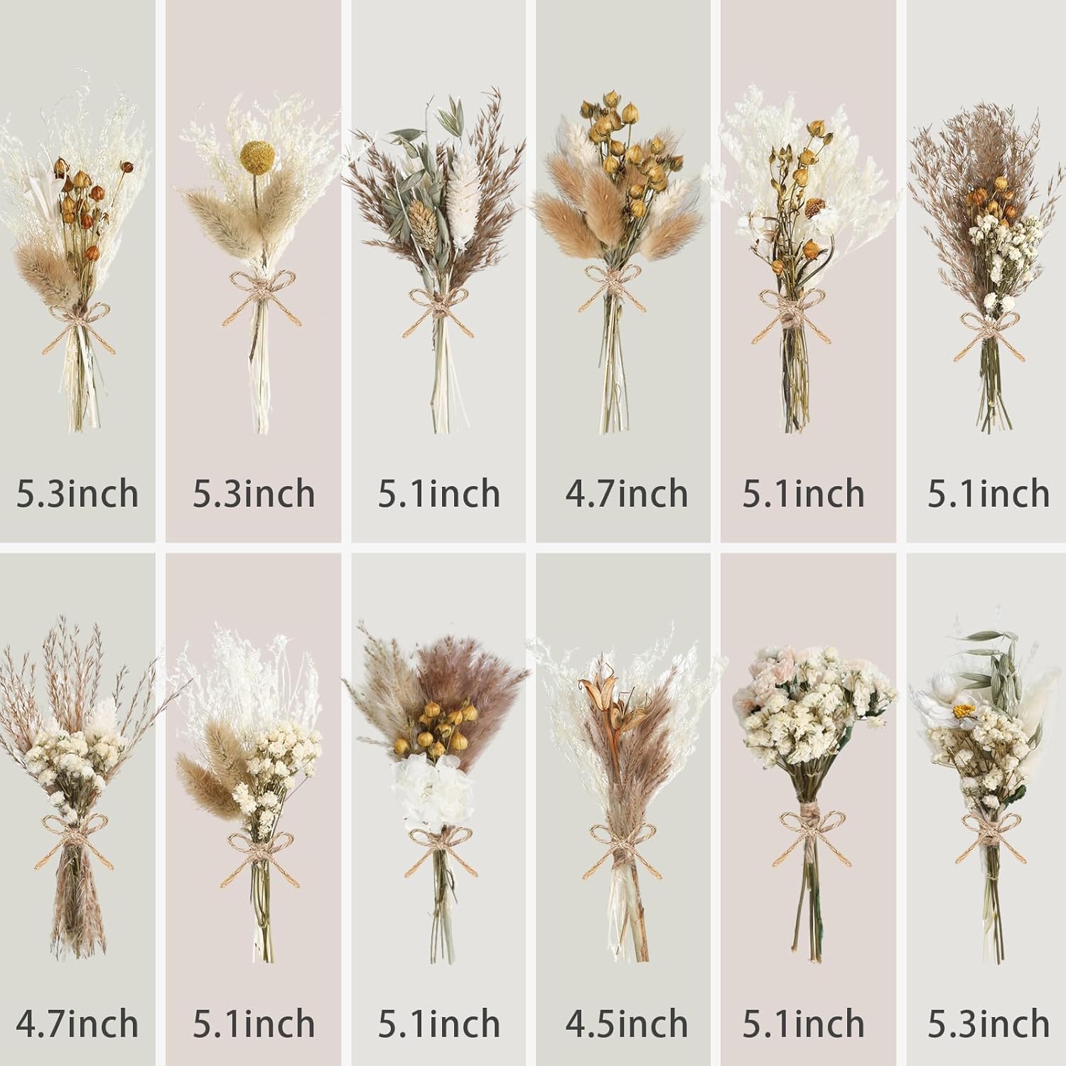 12/24 Pack Dried Flowers for Vase Various Mini Bouquet Dried Small Wildflowers Natural Real Flowers Bulk for Crafts DIY Wedding Decor (12, Plain Colour)