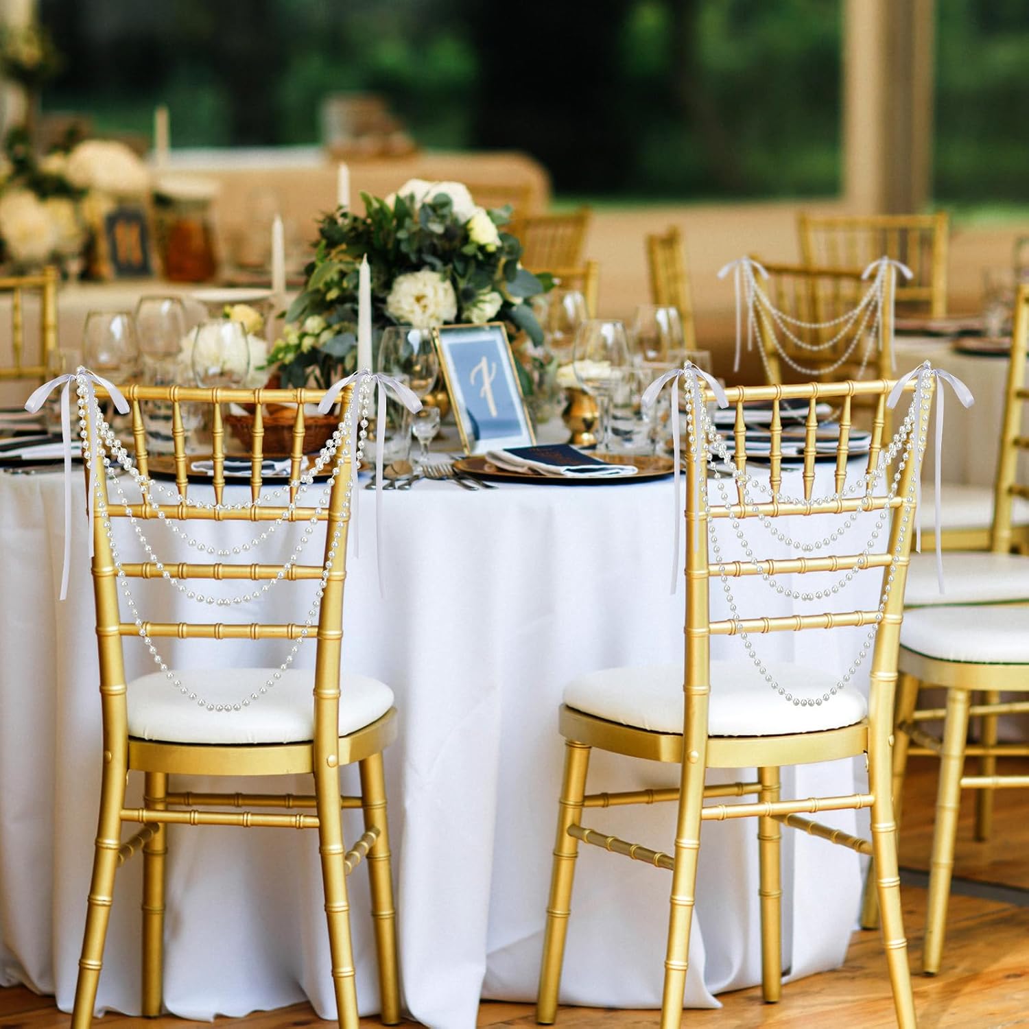 - Sufficient Quantity for Versatile Use: this package includes 16 wedding chair back garland sash with pre tied white bows, providing ample quantity for most applications; Whether you're decorating for a wedding, party, or special event, the large quantity allows for creative arrangements, such as pearl chair back garlands or beautiful centerpieces, ensuring your decor is visually appealing and eye catching
