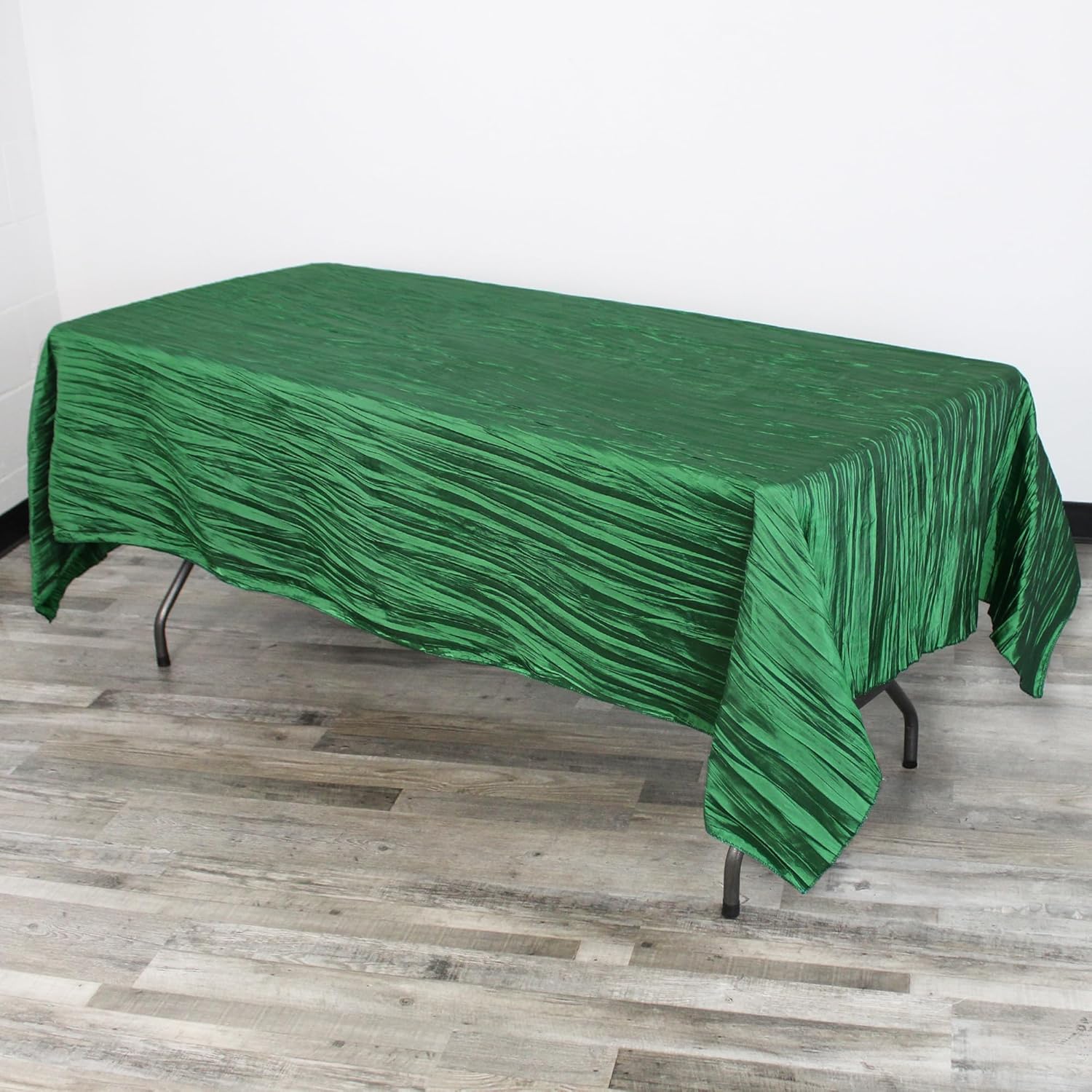 - Elevate your event decor with our 60 x 102 inch hunter green crinkle taffeta tablecloth, perfect for weddings and special gatherings or as elegant dining accents.