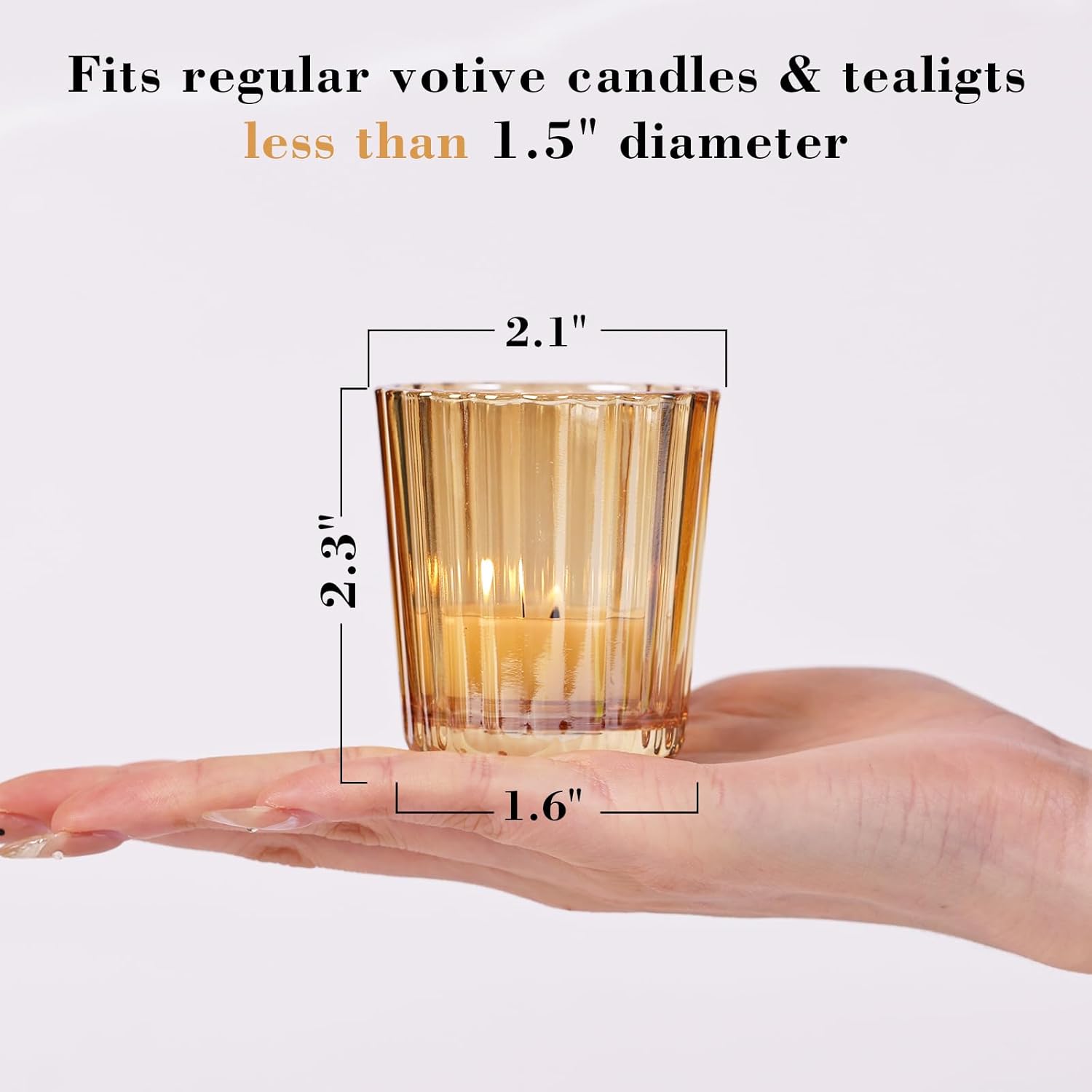 8PCS Vintage Ribbed Gold Votive Candle Holders, Glass Candle Holder for Wedding Decorations, Tealight Candle Holder for Table Centerpiece, Diwali, Home and Party Decorations