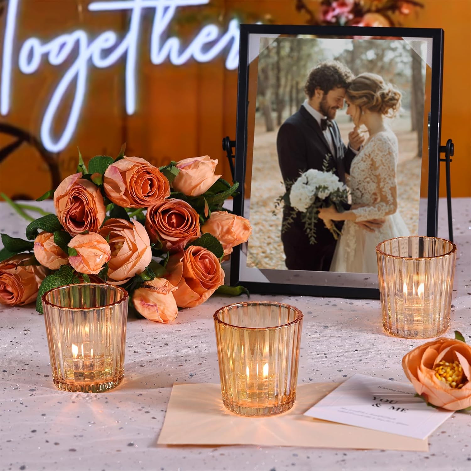 - Gold Votive Candle Holders: The exquisite golden candle holder adopts a stylish appearance design with gold vertical stripes and can be wrapped in the entire surface. The glittering golden tone adds a luxurious style to any environment, making it a wedding, and even as the ideal choice for the core choice on the table.