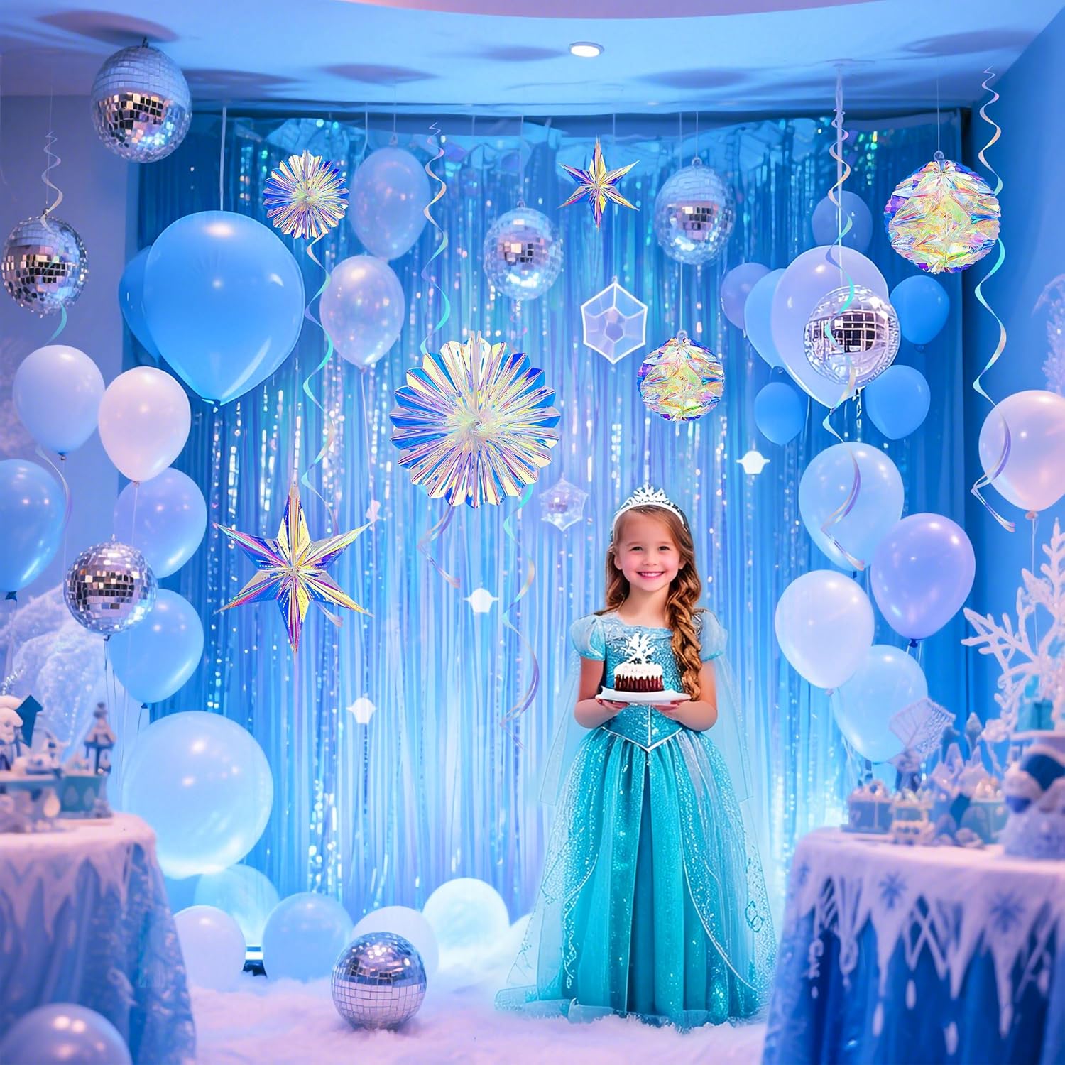 - Versatile Hanging Options: Lightweight and flexible, this iridescent party supply set can be hung on walls, windows, ceilings, doors, Christmas trees, or classroom spaces. Easily enhances any area with layers of festive charm