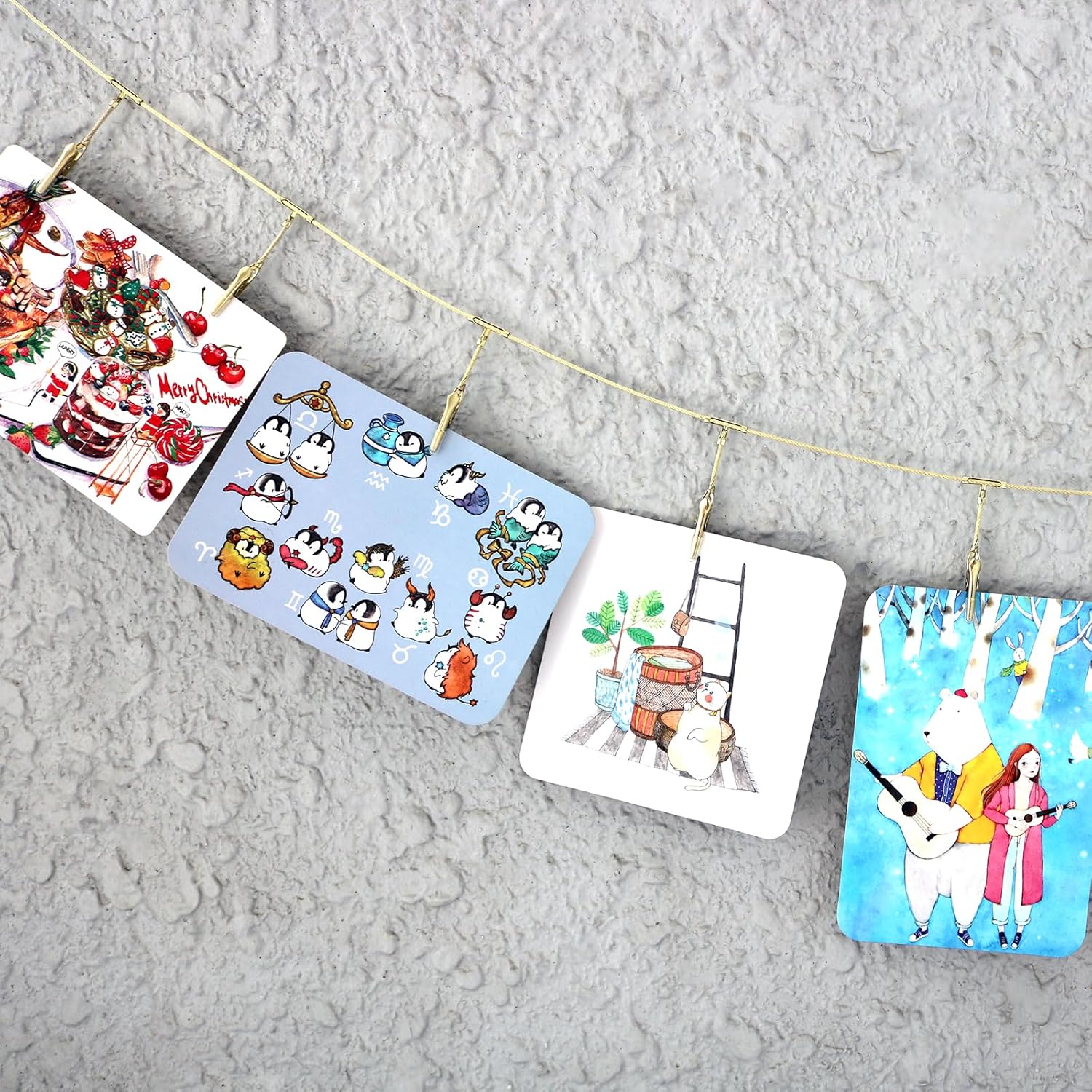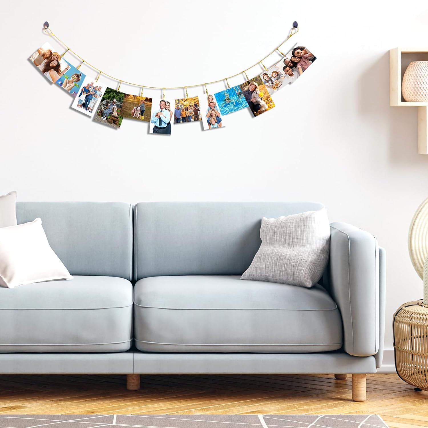 - 【Multi-Use Wall Photo Display】Transform any space with our Chain Photo Clip! Good for organizing family photos, displaying kids' artwork, hanging lightweight tools in in studios, etc. 12 metal clips hold securely without slipping - Good for home, office, classroom decor that evolves with your memories.