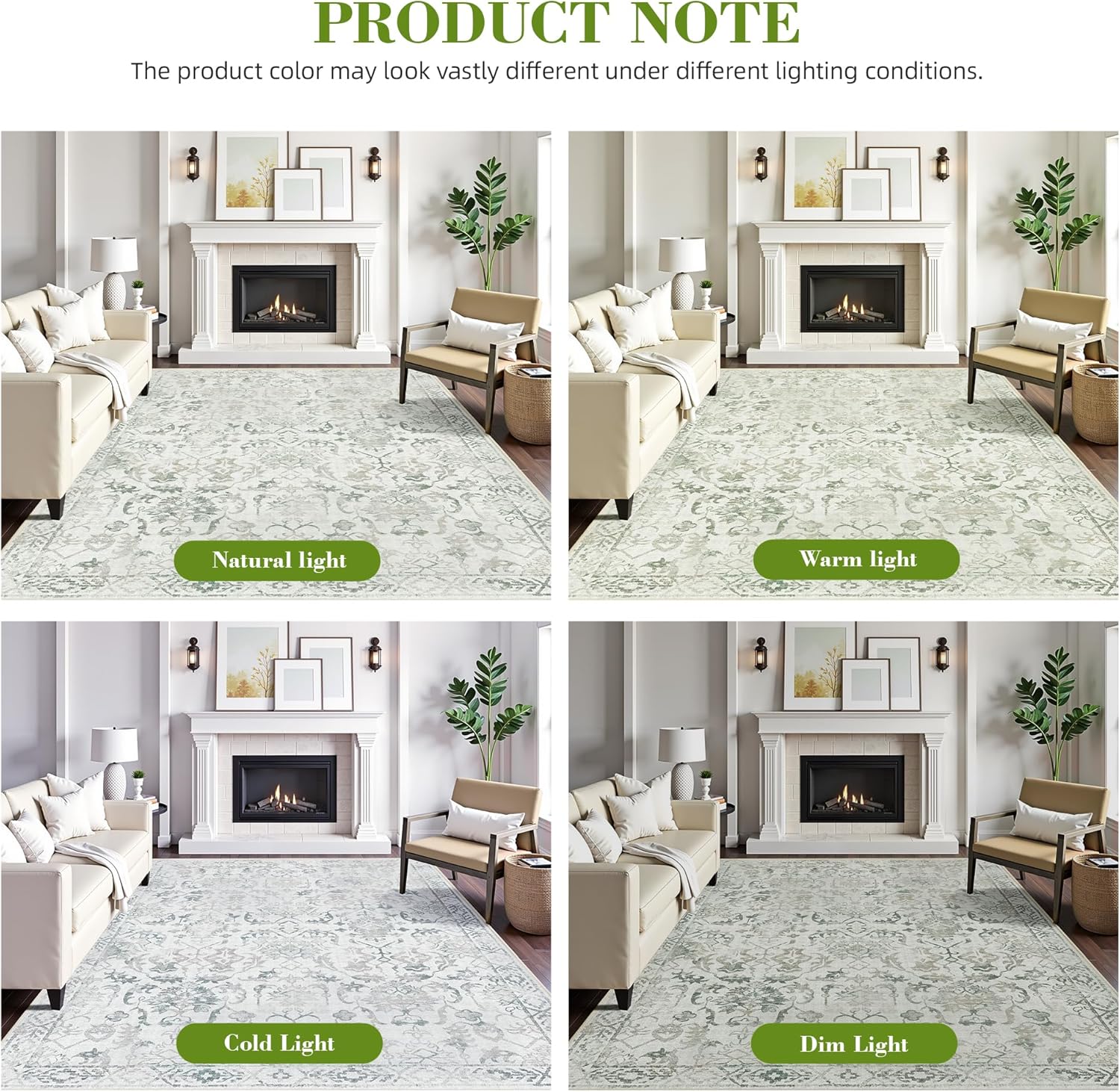 Light Green Area Rugs 5x8 for Living Room, Washable Vintage Rugs for Bedroom, Non Slip Throw Carpet for Bedroom Dining