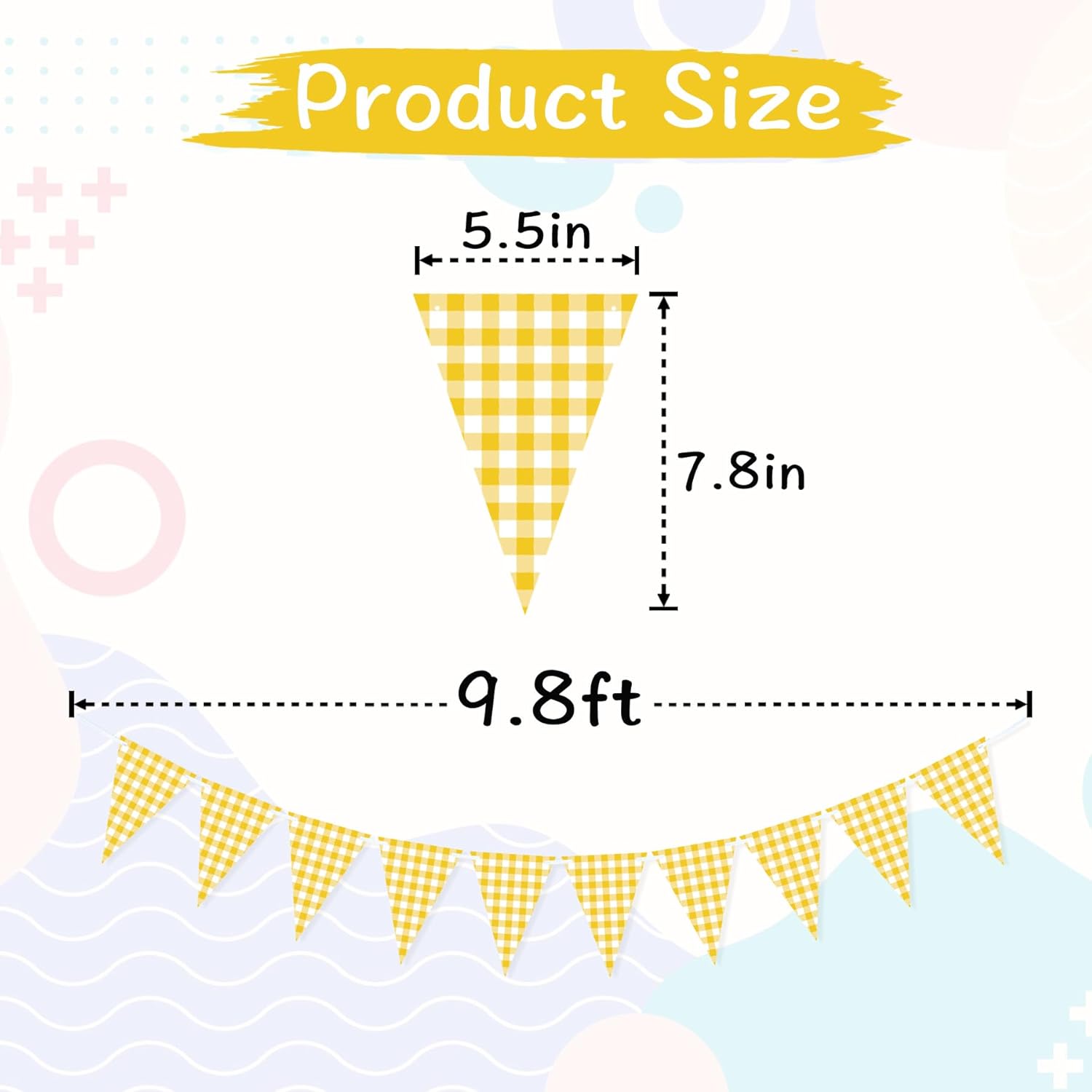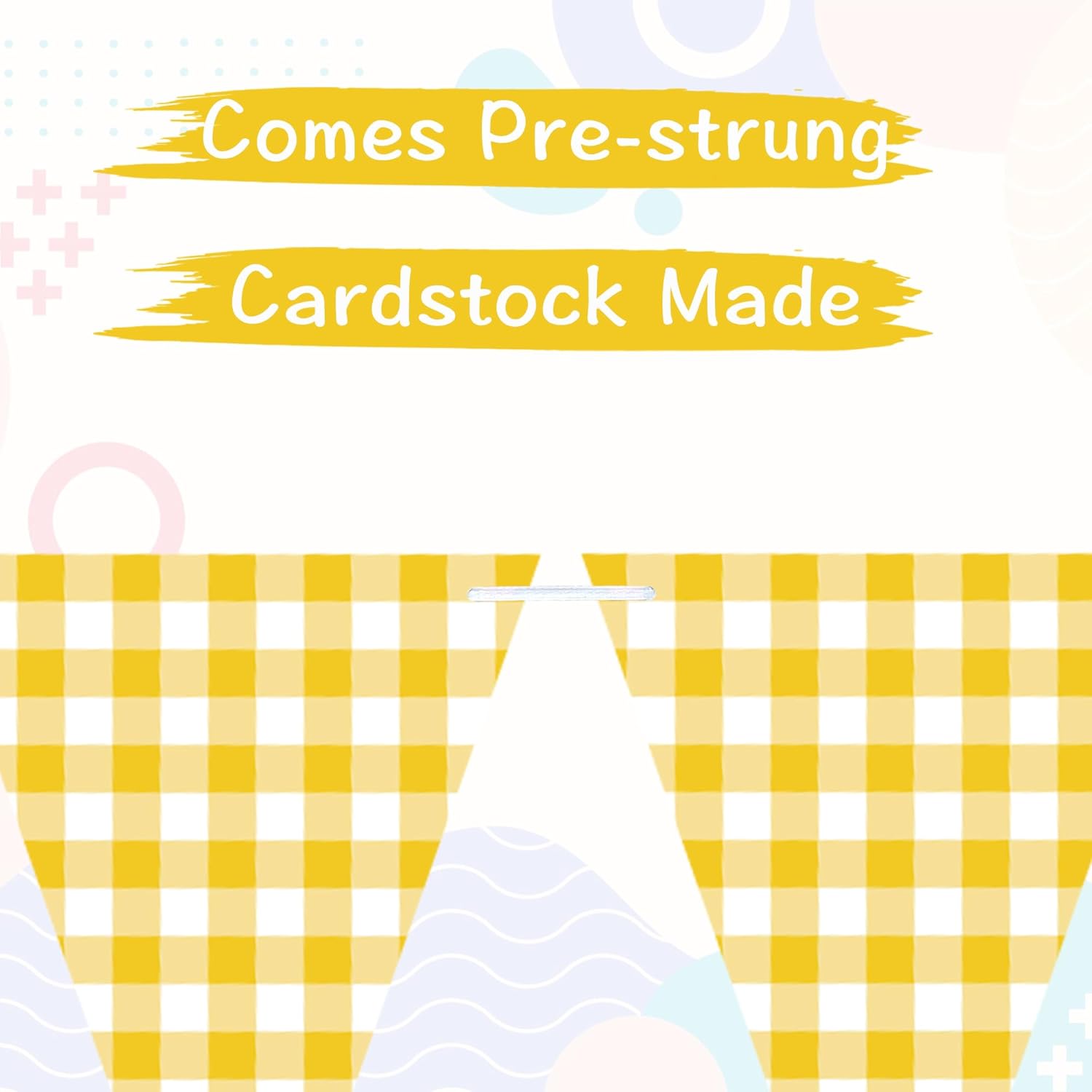 - Package includes 2pcs yellow gingham banner in classic yellow and white grid pattern, features a yellow theme to add a fun pop of color to every of your gatherings, comes pre-strung and distance adjustable that you can space them to the perfect site you like