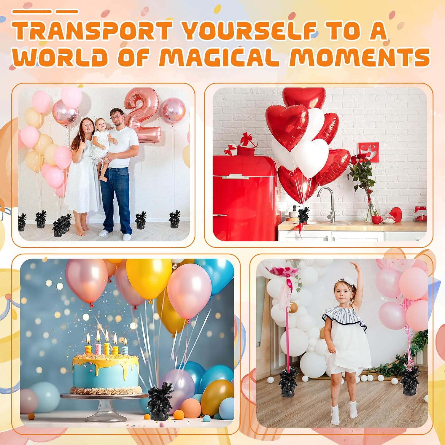 - Easy to Use: Compact and easy to use, these weights fit seamlessly into your party setup. Simply attach the string or ribbon of your balloon to the weight, and enjoy worry decoration, ideal for coordinating with other party decorations