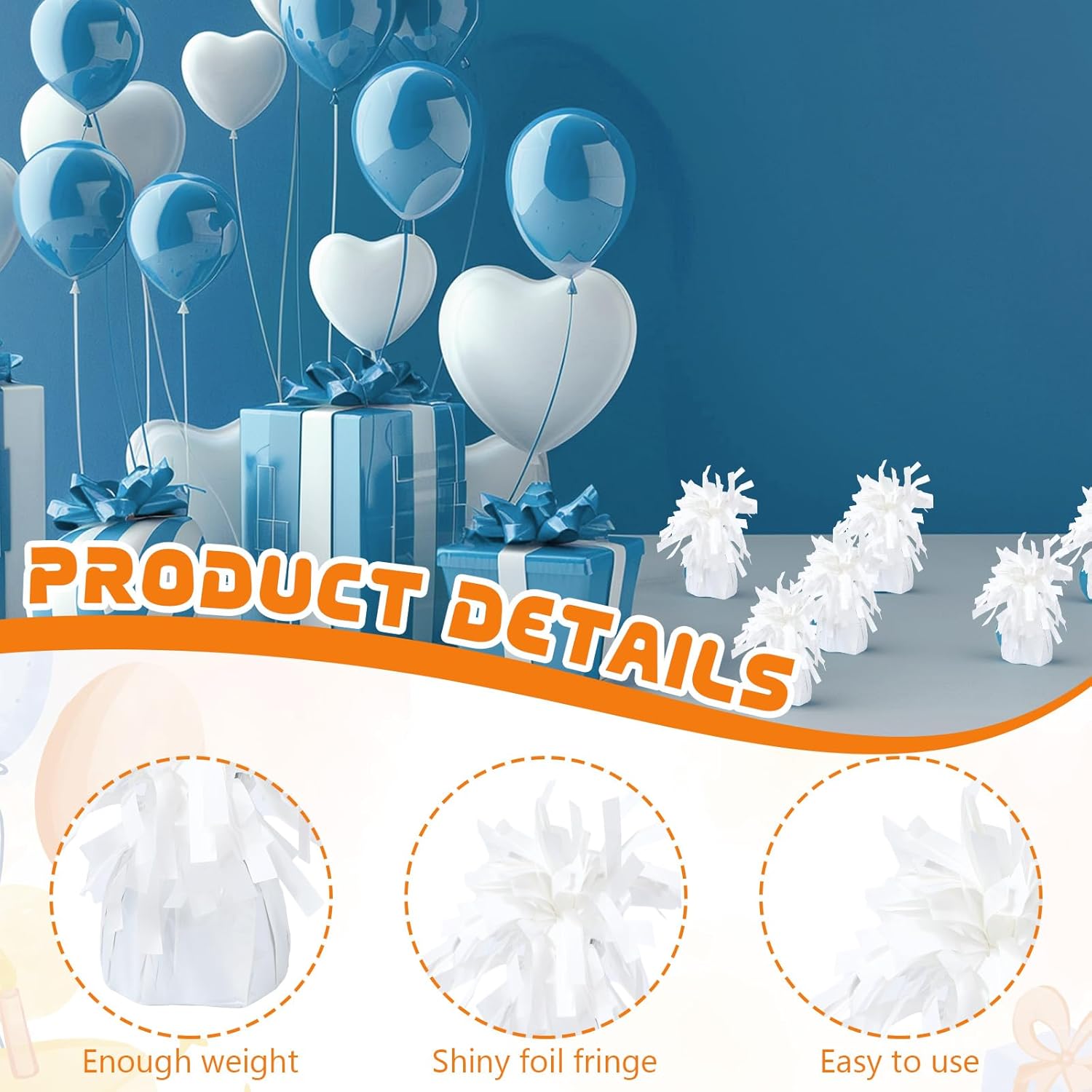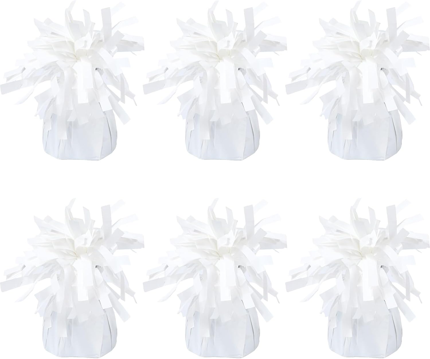 6 Pack White Balloon Weights Metallic Holder Anchors Balloon Holder Weights for for Birthday 2025 Graduation Party Christmas Wedding Celebration Decoration (White)