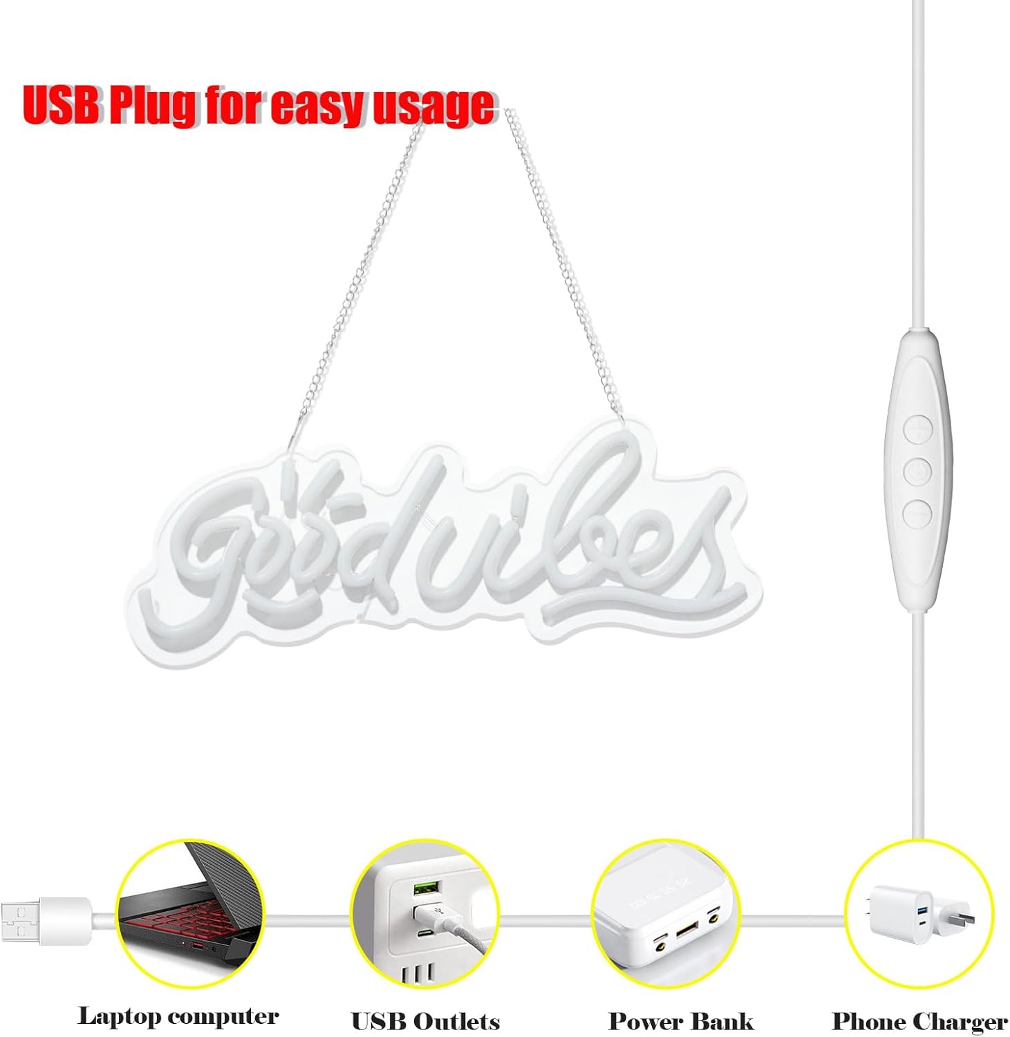 - Easy Installation & USB Power - No electrician needed! The good vibes olny neon sign Easy to install hanging on the wall or placed on the desktop. Includes 6.5ft USB cable for flexible placement near outlets/power banks.