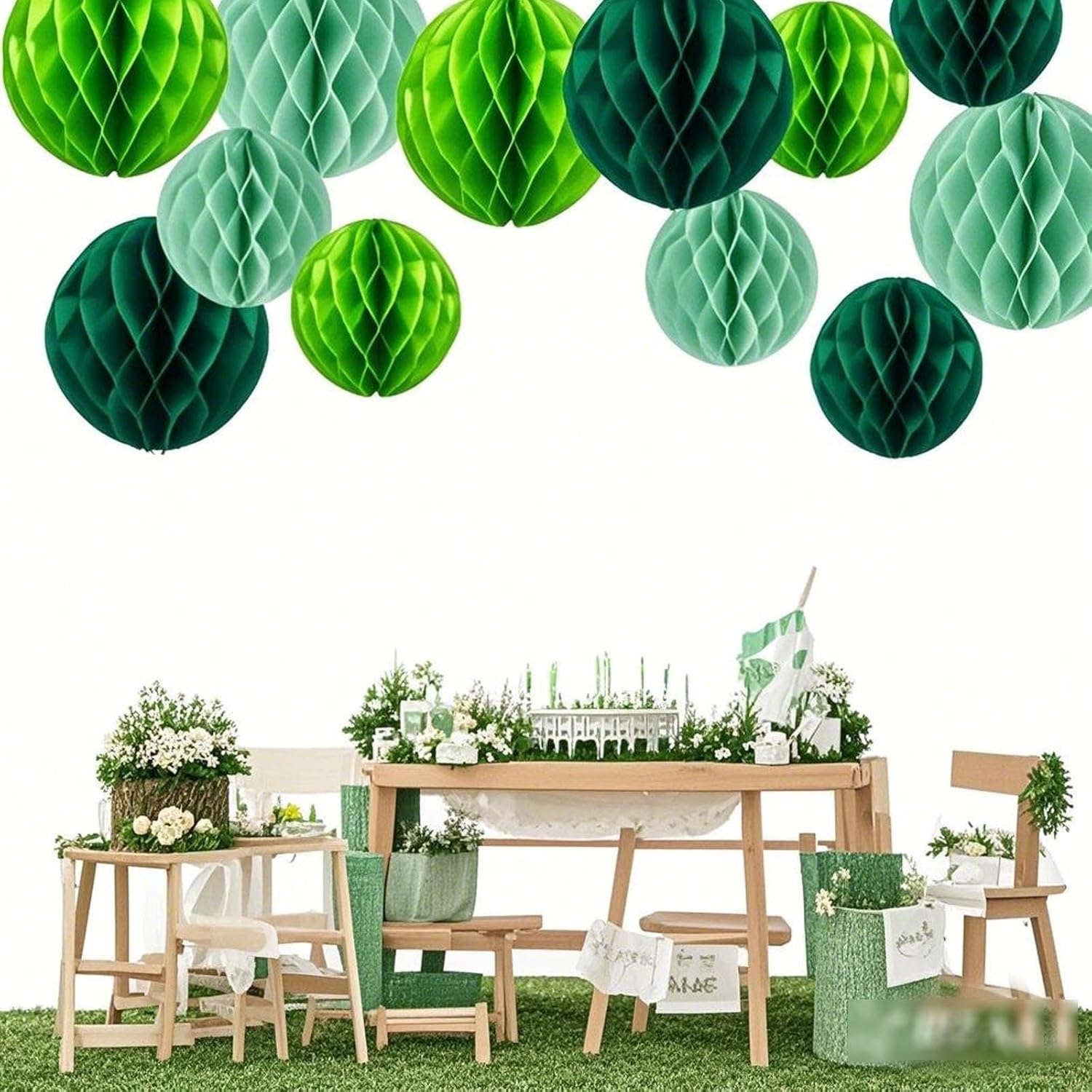 - Includes Paper Honeycomb Balls in 3 colors:fruit green, dark green, mint green.Each color comes in 2 sizes: 6 inches and 10 inches