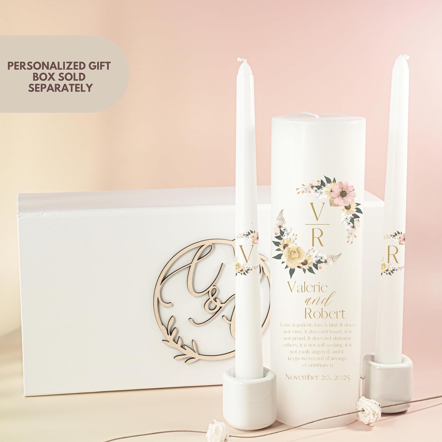 Unity Candles for Wedding, Modern Unity Set, Custom and Personalized Pillar and Taper Candles with Bible Quote, Unscented White Premium Wax, Religious and Wedding Ceremony, Special Events