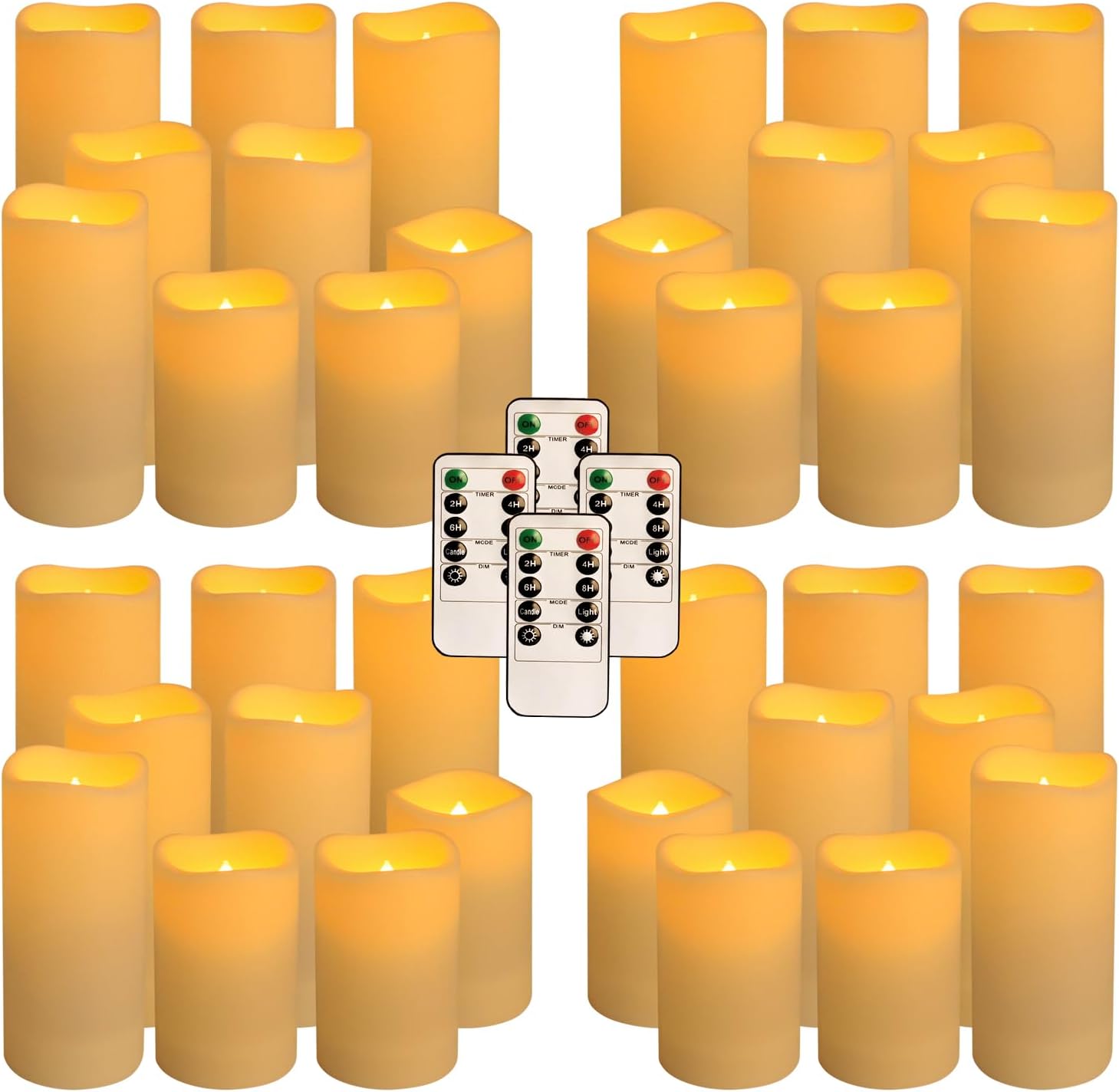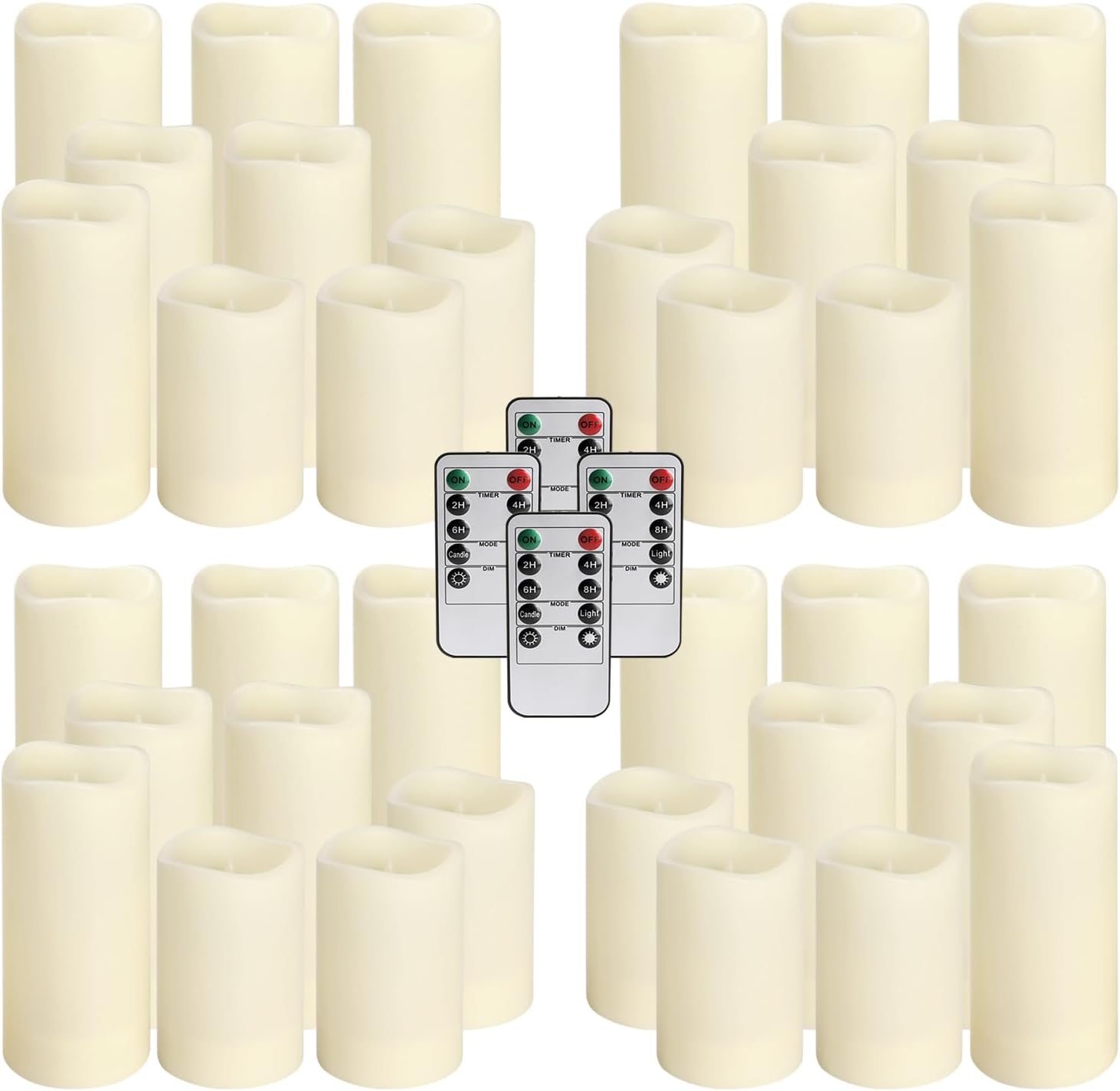 36 Pack Waterproof Flameless LED Candles - Outdoor Battery Operated Candles with Remote & Timer, Realistic Flickering Flame, Safe for Porch, Patio, Weddings, Parties & Home Decor