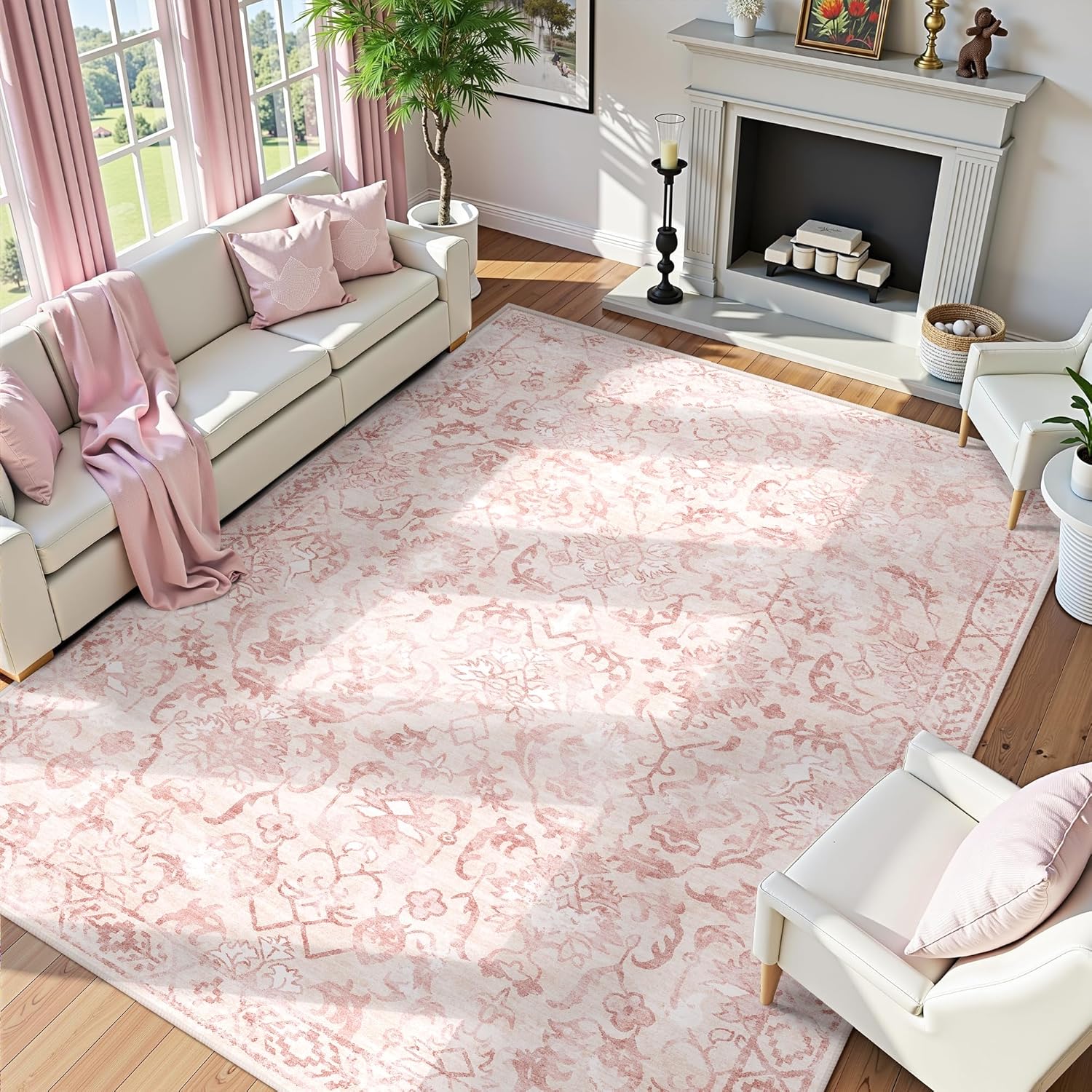 • Deerly Vintage 9x12 Rugs for Living Room: This area rug features trendy faded style and unique neutral distressed floral pattern, vintage tones combines the pink and ivory color, creating a comfortable and warm family environment. Dorm carpets are suitable for living room, bedroom, dining room, office, etc.
