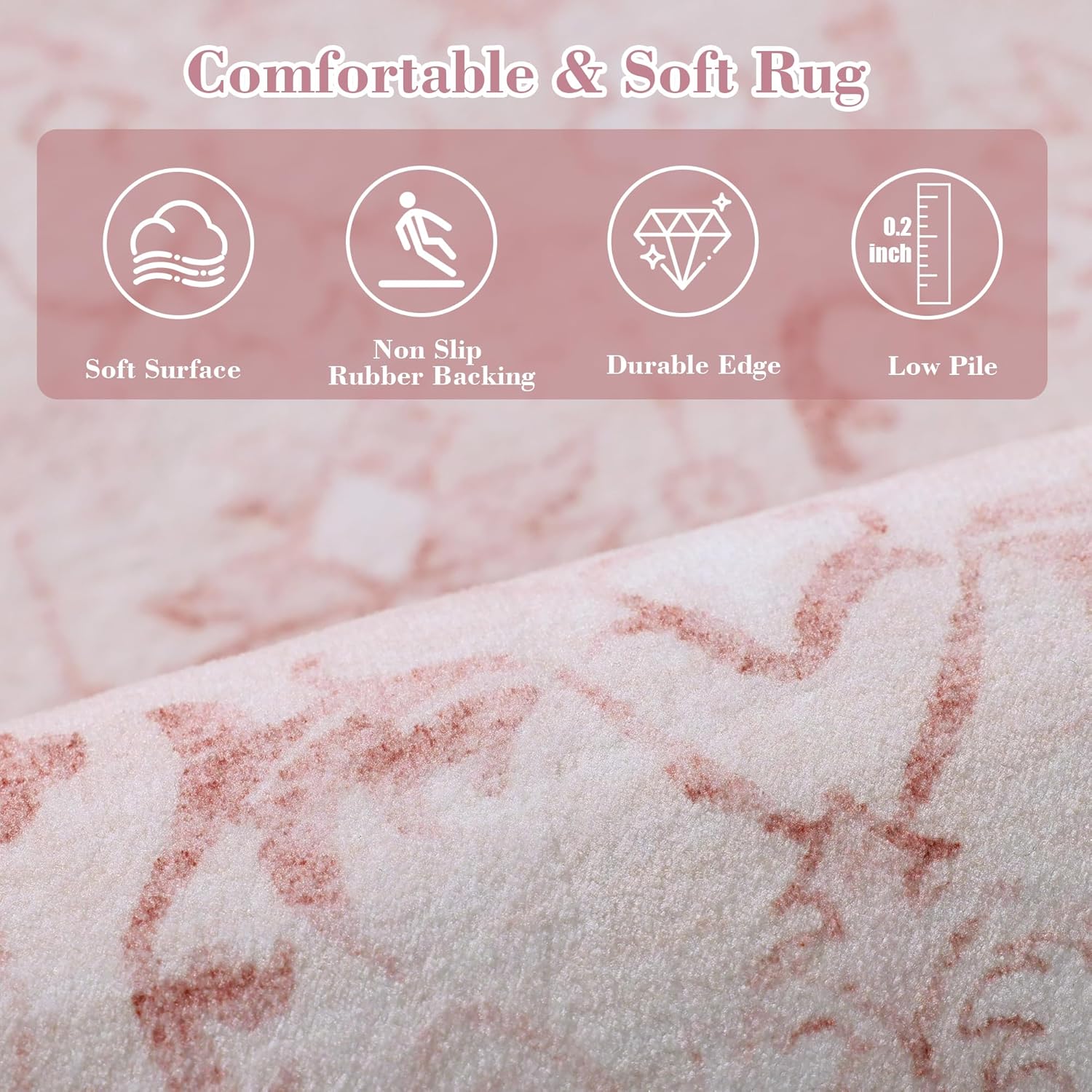 - Deerly Vintage 3x7 Runner Rug: These Hallway runner rug feature trendy faded style and unique neutral distressed floral pattern, vintage tones combines the pink and ivory color, creating a comfortable and warm family environment. 3x7 rug runner is suitable for indoor entrance, bedroom, kitchen, bathroom, etc.