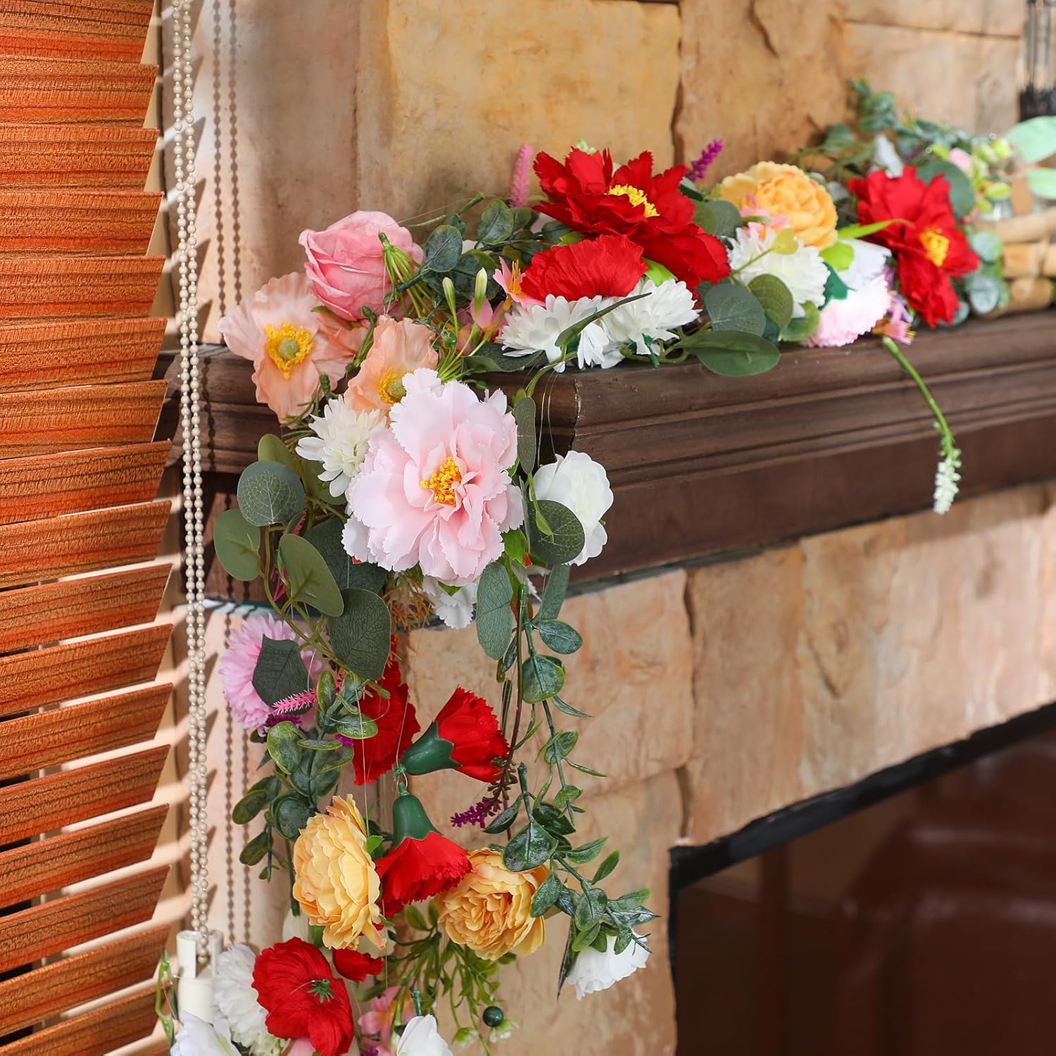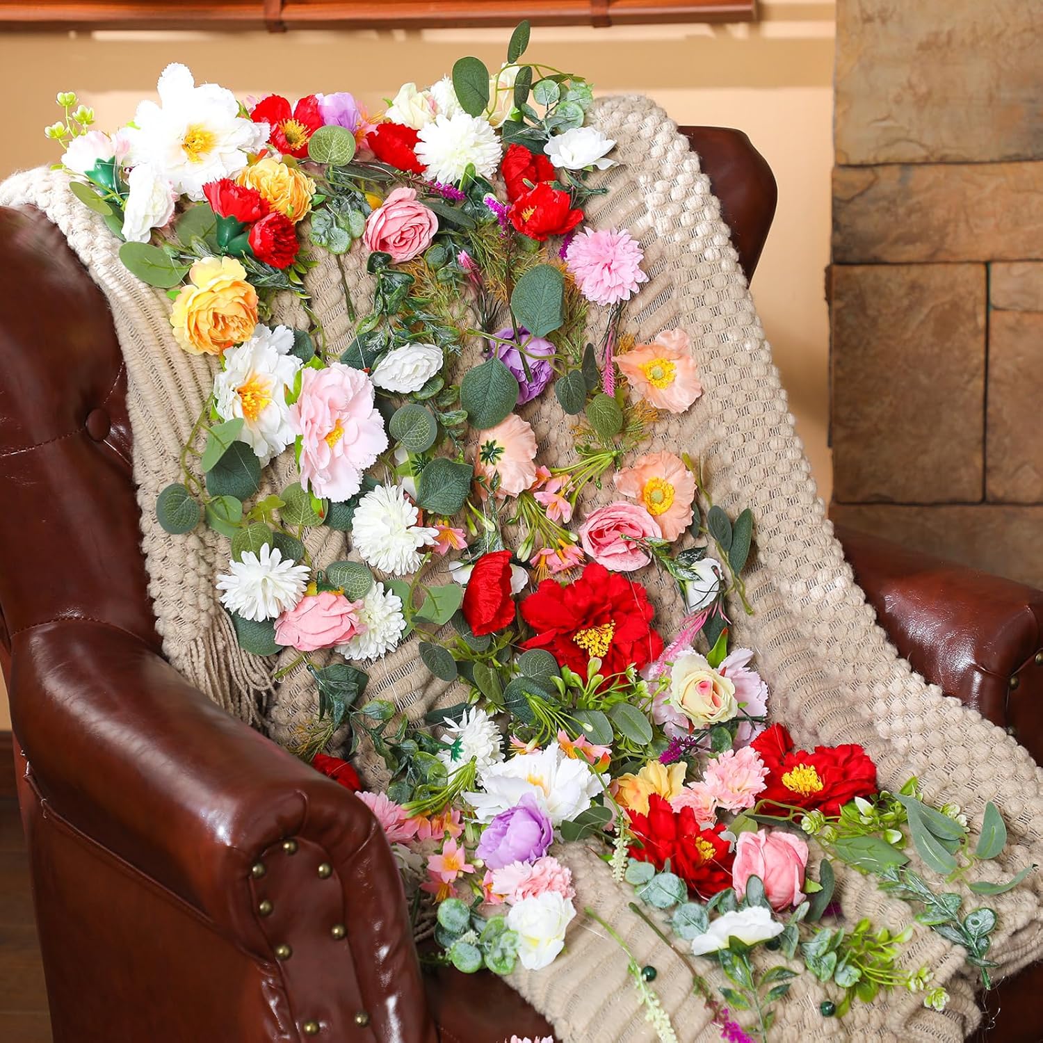 - Generous Size: each artificial wildflower garland measures about 5.9 ft /1.8 m with transparent silk thread, providing ample coverage for various decorative needs; Whether draped across mantels, twisted around banisters, or hung as backdrops