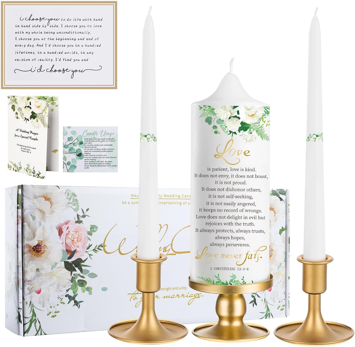 Extrogif Unity Wedding Candles Ceremony Set - 3 Floral Candles Set with Gold Holders, Elegant Wedding Decorations for Ceremony, Religious Bible Verse - Gifts for Couples 2025