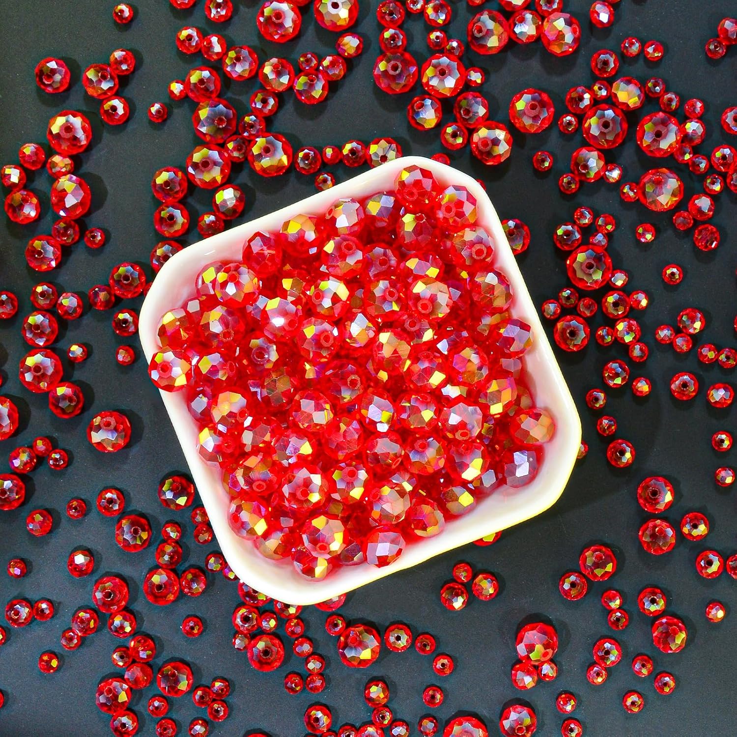 1200Pcs 4mm Crystal Glass Beads for Jewelry Making Beads for Bracelets Necklace Pendants Making Supplies(Red)