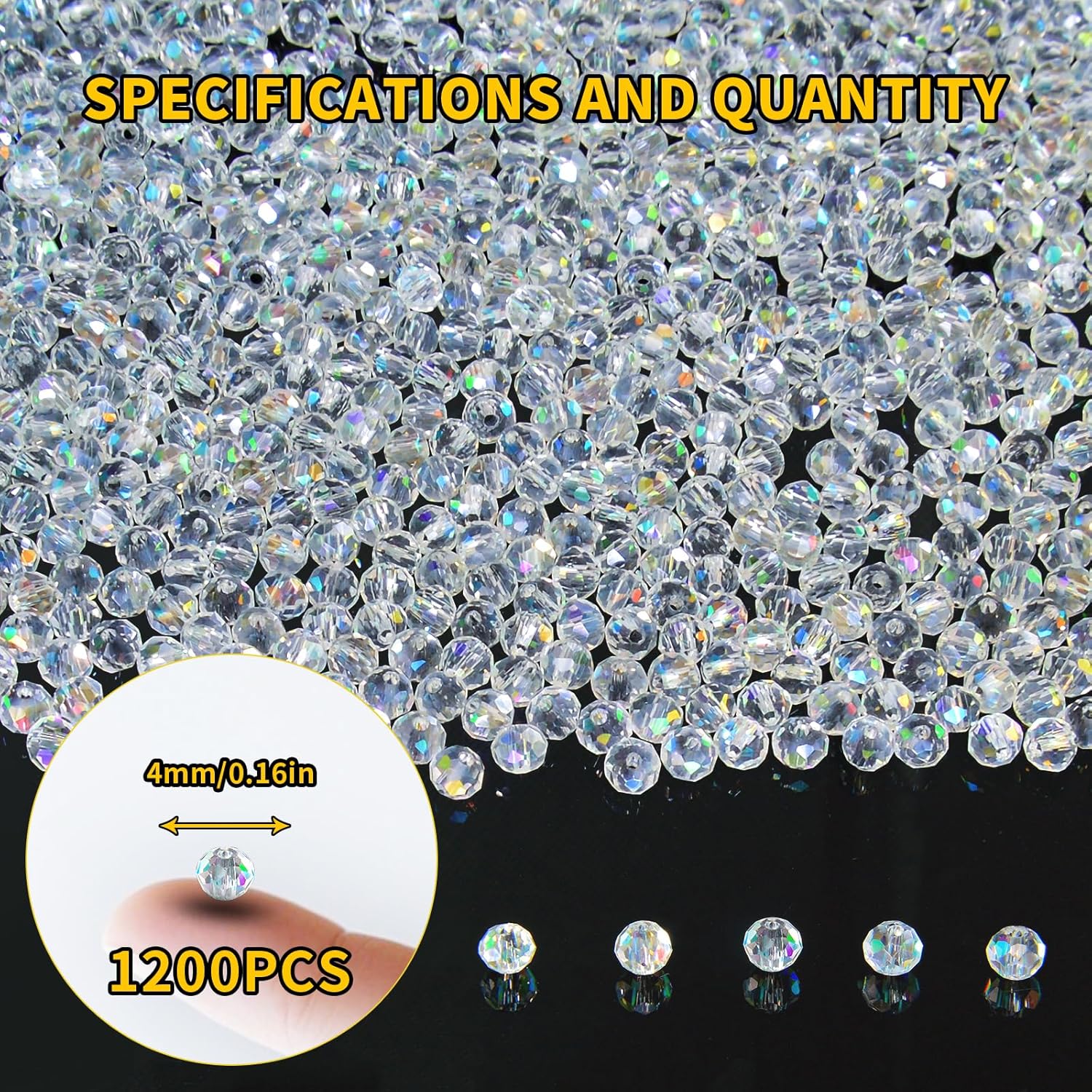 1200Pcs 4mm Crystal Glass Beads for Jewelry Making Beads for Bracelets Necklace Pendants Making Supplies(White AB Color)