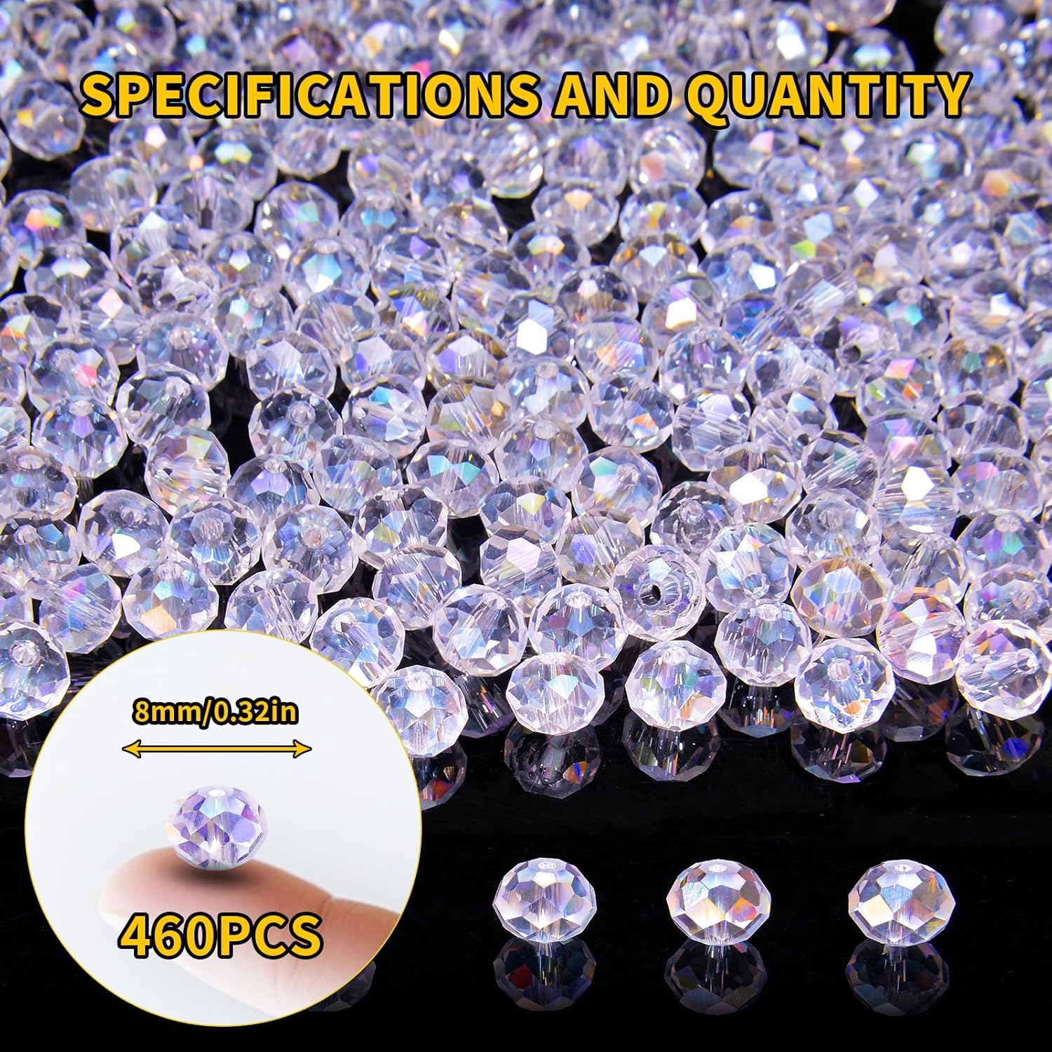 460Pcs 8mm Crystal Glass Beads for Jewelry Making Beads for Bracelets Necklace Pendants Making Supplies(Light Purple)
