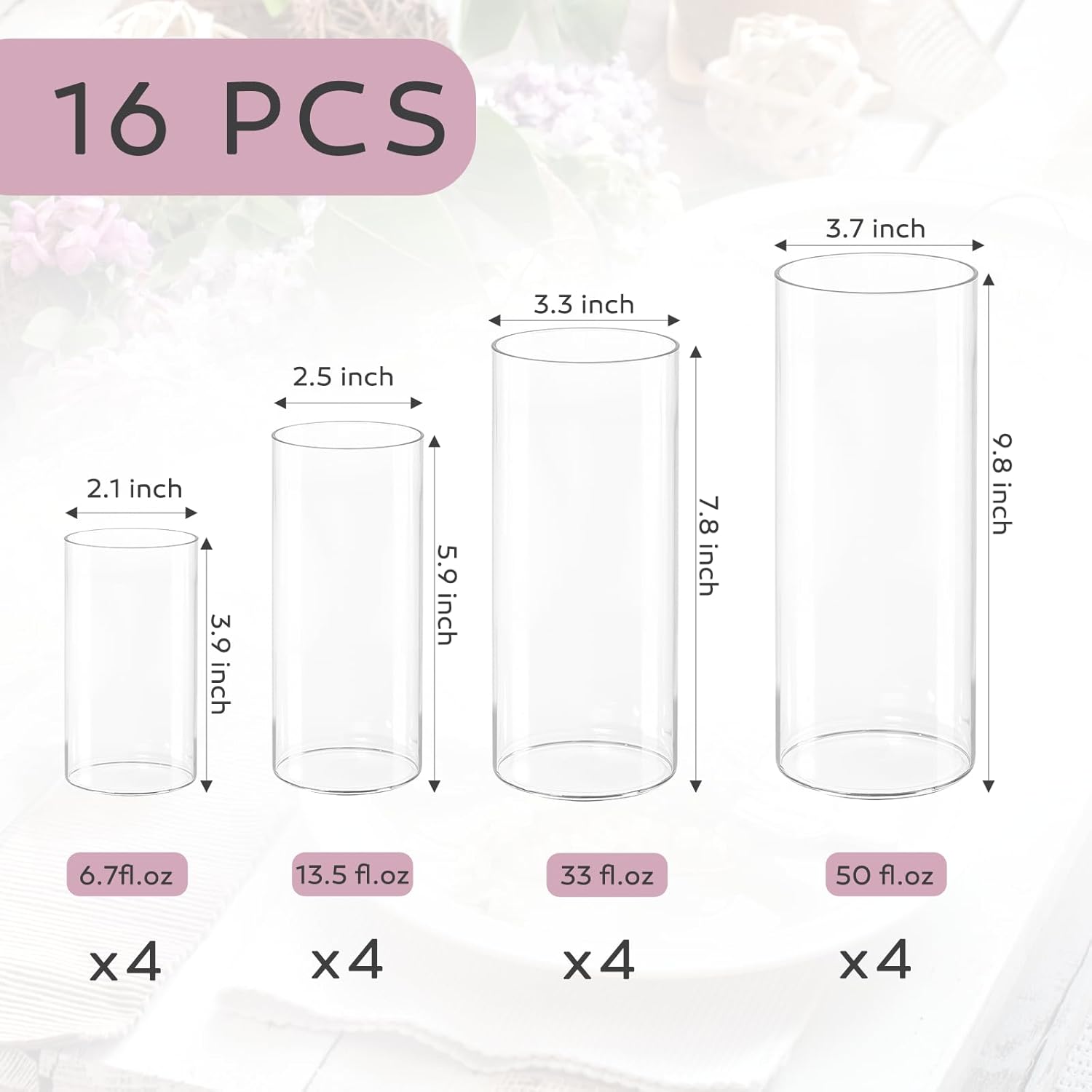 16 Pcs Cylinder Vases Set, 4,6,8,10 Inch Tall Clear Glass Vases for Centerpieces, Modern Floating Candle Holders Vase for Wedding, Table Shelf, Party, Home Decor