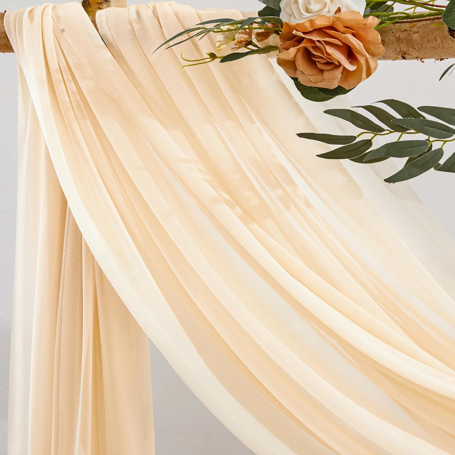Champagne Wedding Arch Draping Fabric 3 Panels 30'' x 20FT Champagne Drapes Sheer Fabric Backdrop Arch Draping Fabrics for Wedding Ceremony Birthday Party Bridal Shower Decoration