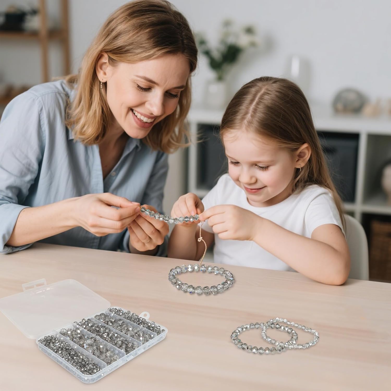500Pcs 6mm Crystal Glass Beads for Jewelry Making Beads for Bracelets Necklace Pendants Making Supplies(Gray)
