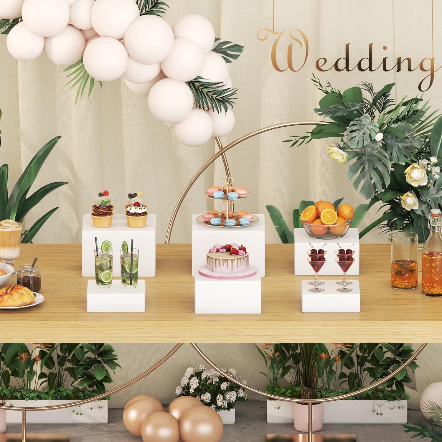 - Versatile Use: Beyond showcasing cakes and other foods, these buffet risers and stands can also display collectible figurines, sculptures, jewelry, and crafts. They can be inverted as storage boxes for cosmetics, office supplies, and more