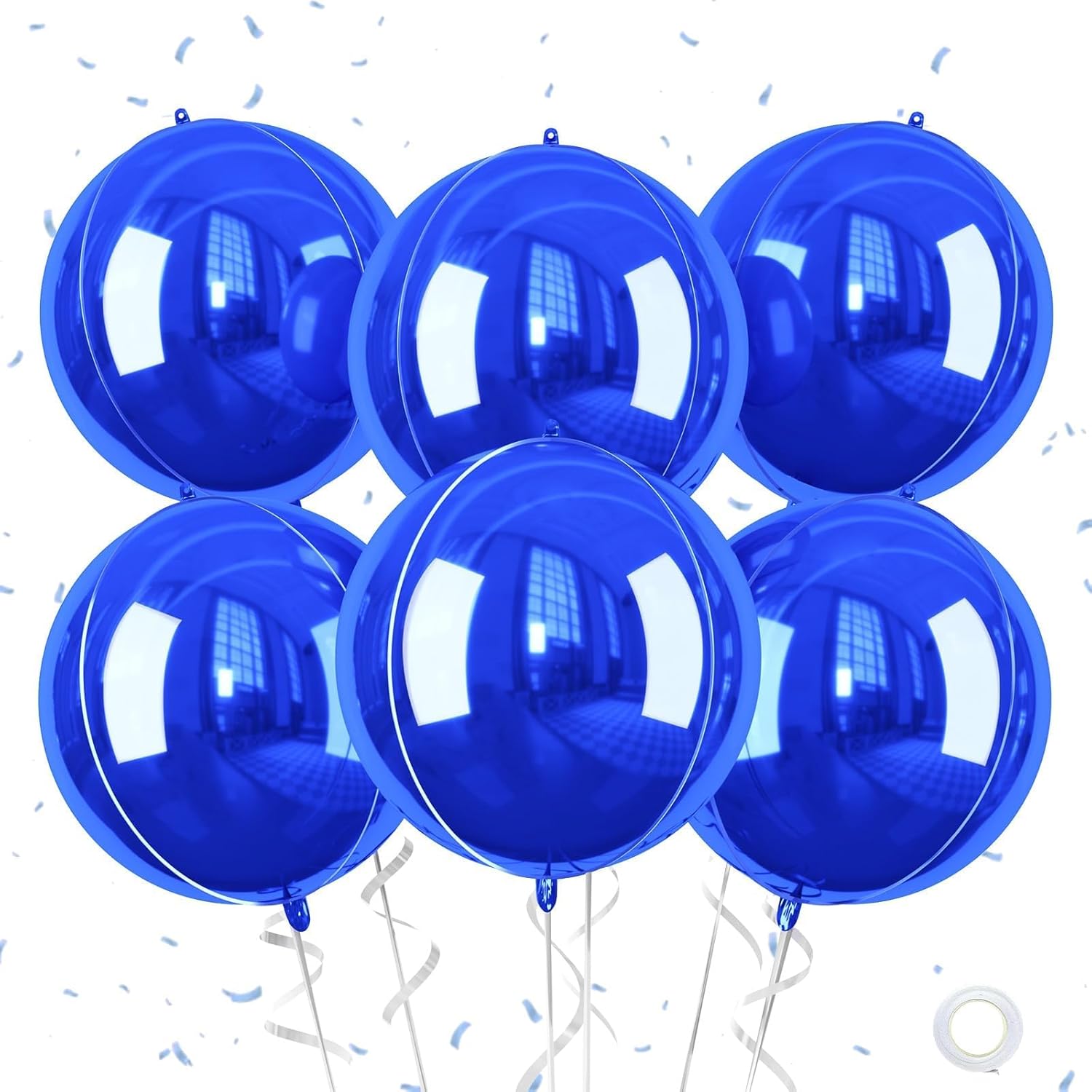 Giant 4D Foil Balloons, 6Pcs Large Metallic Royal Blue Round Balloons, 22 Inch Big Round Foil Balloon for Blue Sea Birthday Party Baby Shower Wedding Decorations