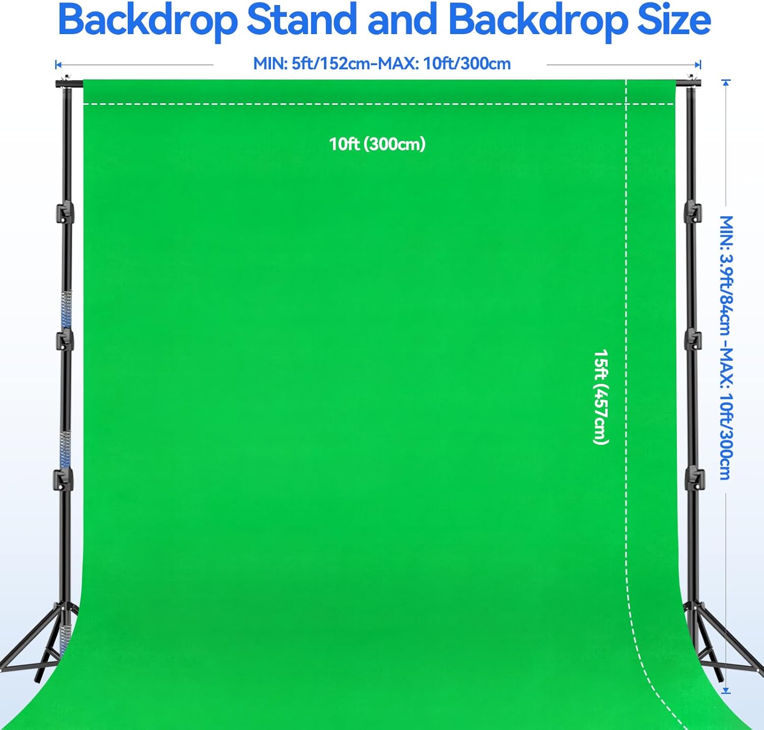- Backdrop Support Stand: This kit is a professional support with Adjustable Height( Max 10 ft ) and Width( Max 10 ft ) Aluminum Alloy Construction for Durability, Portability. Can be assembled by one person in just a few minutes Portability. Can be assembled by one person in just a few minutes