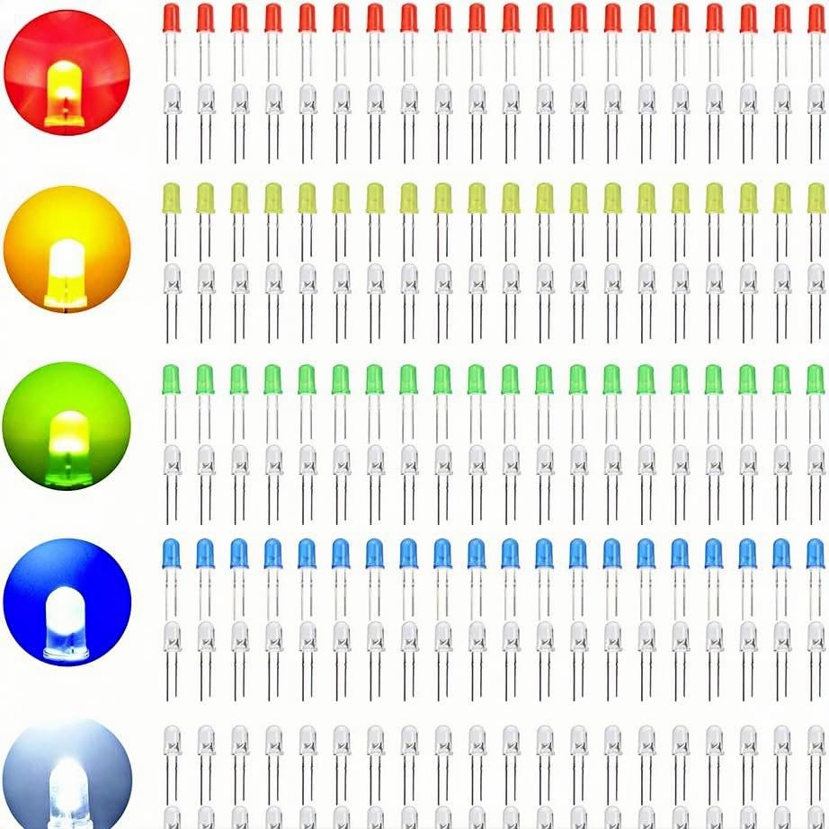 - Comprehensive Components: This 800pcs electronic component kit includes 600 high-precision metal film resistors (ranging from 10Ω to 1MΩ across 30 key resistance values) and 200pcs 5mm LED diodes, making it perfect for a wide array of electronic projects.