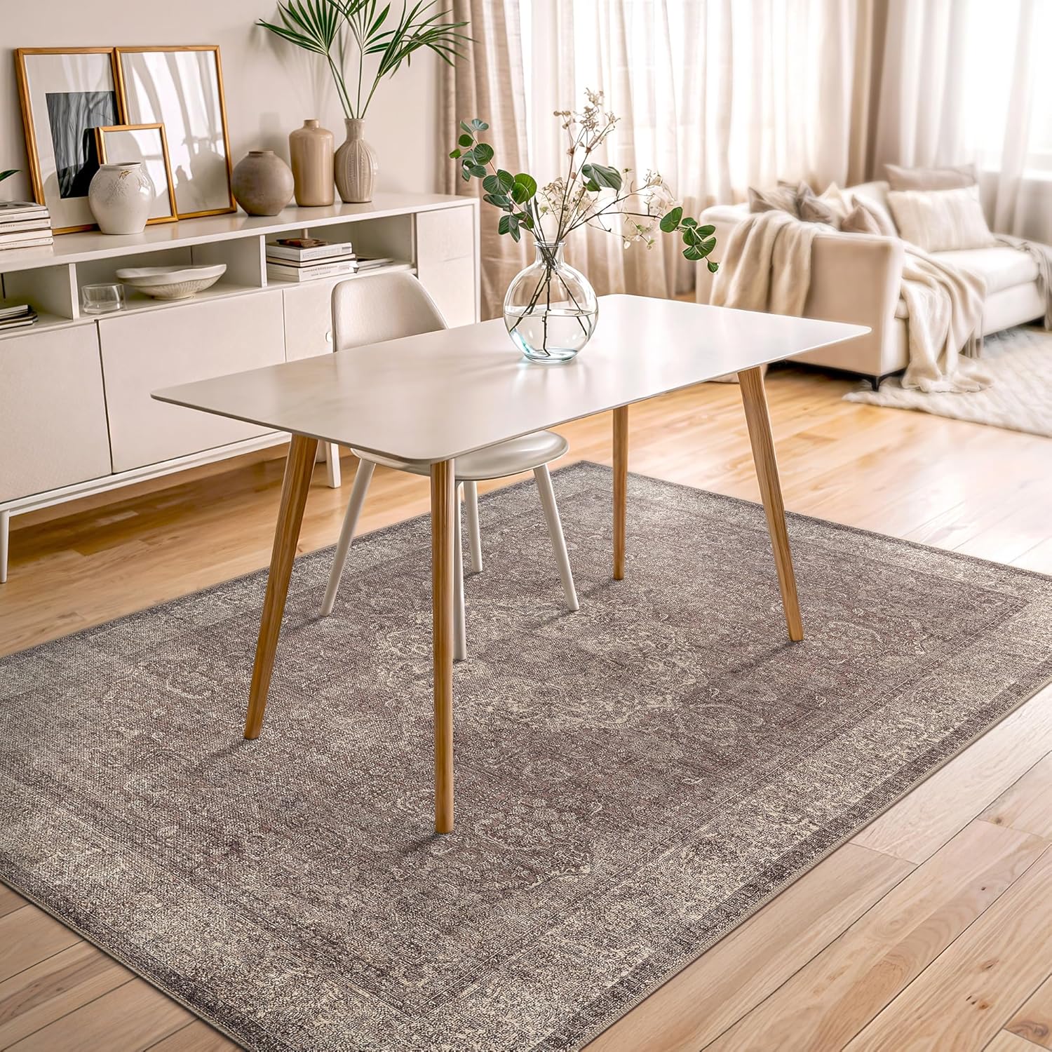 Bloom Rugs Washable Non-Slip 5' x 7' Rug - Taupe/Beige Traditional Medallion Area Rug for Living Room, Bedroom, Dining Room, and Kitchen - Exact Size: 5' x 7'