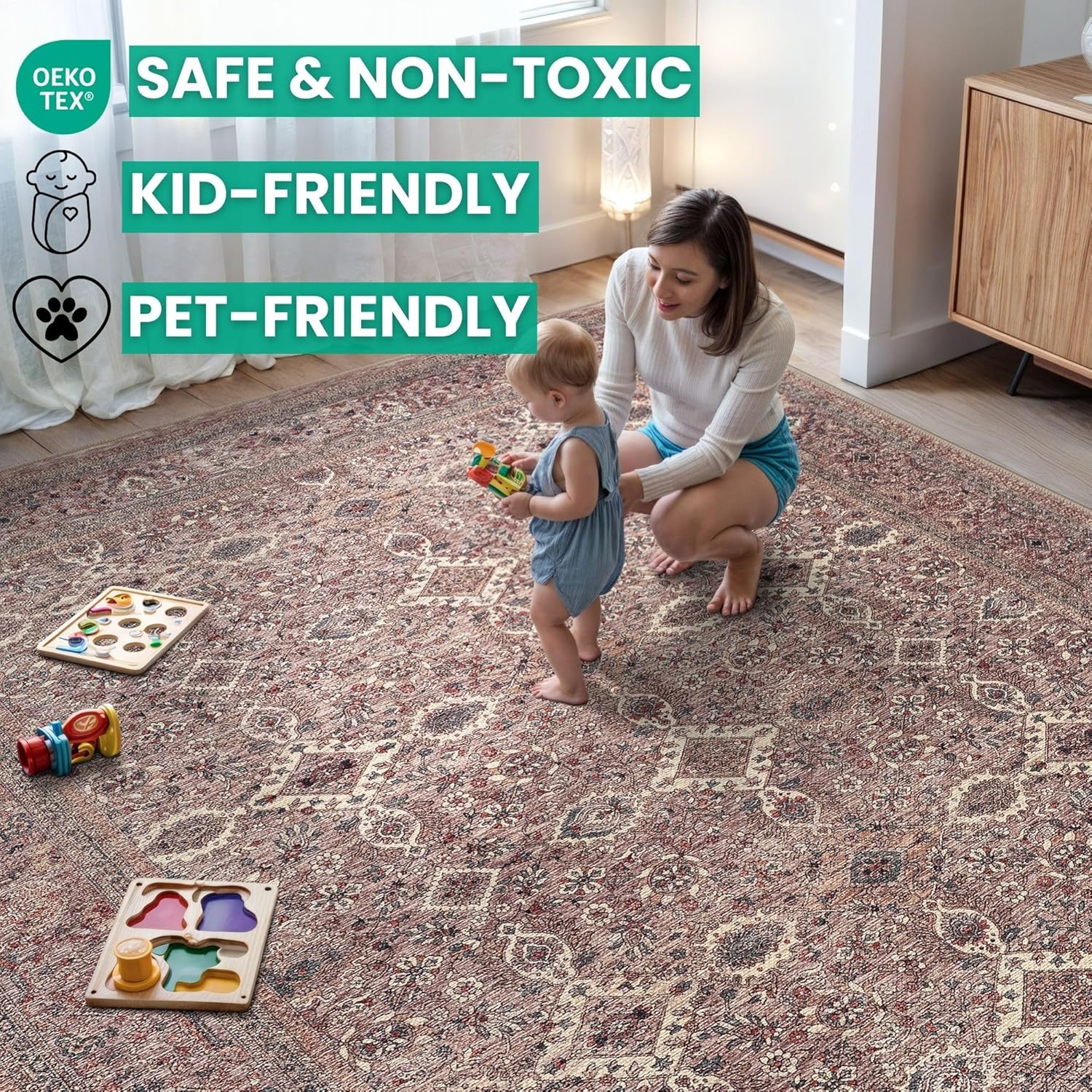 • EASY TO SETUP AND NON-SLIP: This one-piece machine washable rug with non-slip backing attached eliminates any additional setup. Simply unfold and lay flat upon arrival in the desired space. Non-slip backing prevents the rug from moving or sliding without the need for additional rug pad or grippers.