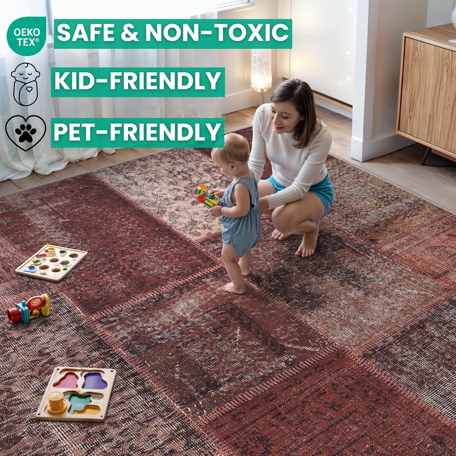 - EASY TO SETUP AND NON-SLIP: This one-piece machine washable rug with non-slip backing attached eliminates any additional setup. Simply unfold and lay flat upon arrival in the desired space. Non-slip backing prevents the rug from moving or sliding without the need for additional rug pad or grippers.