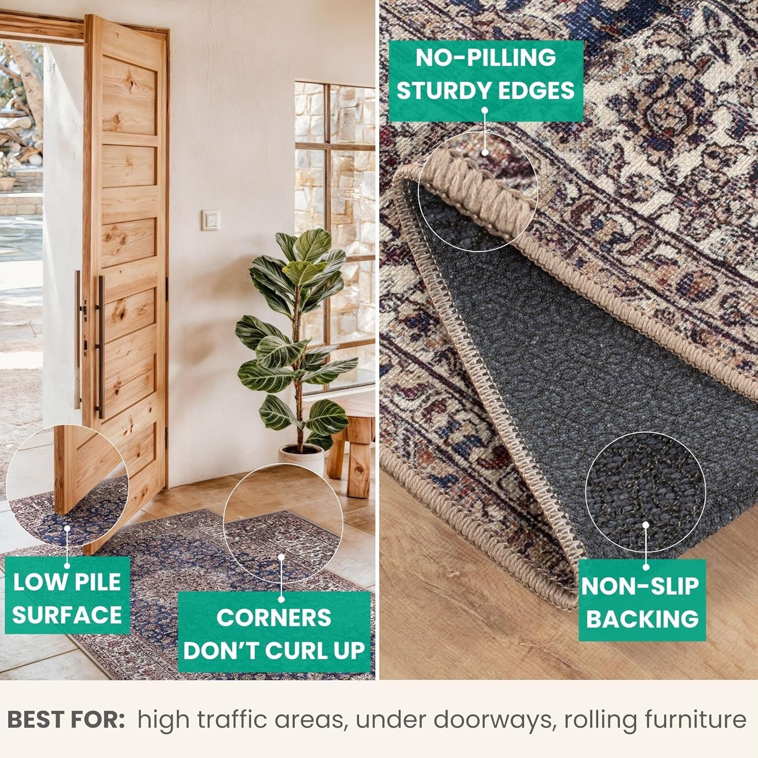 • EASY TO SETUP AND NON-SLIP: This one-piece machine washable rug with non-slip backing attached eliminates any additional setup. Simply unfold and lay flat upon arrival in the desired space. Non-slip backing prevents the rug from moving or sliding without the need for additional rug pad or grippers.