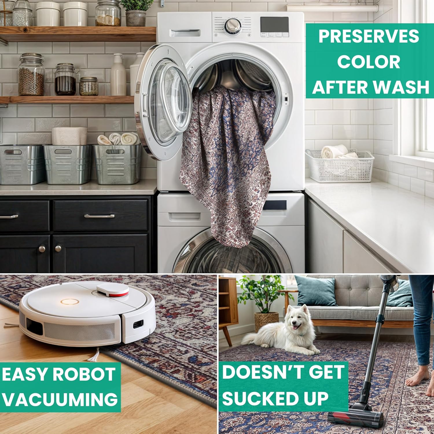 • MACHINE WASHABLE: Machine wash on delicate cycle (do not use bleach) at 85°F (30°C) and line dry or dry on air-only cycle without heat. Vacuum regularly and spot clean small stains. This easy to clean rug is perfect for families with kids and pets, and for high traffic areas.