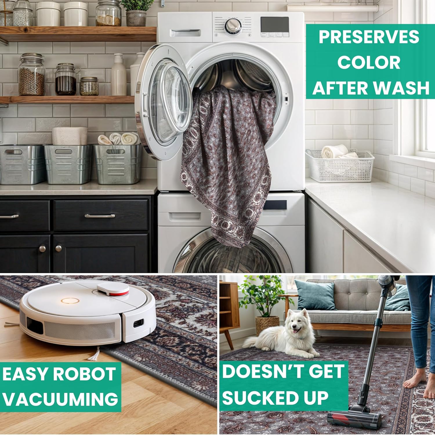• MACHINE WASHABLE: Machine wash on delicate cycle (do not use bleach) at 85°F (30°C) and line dry or dry on air-only cycle without heat. Vacuum regularly and spot clean small stains. This easy to clean rug is perfect for families with kids and pets, and for high traffic areas.