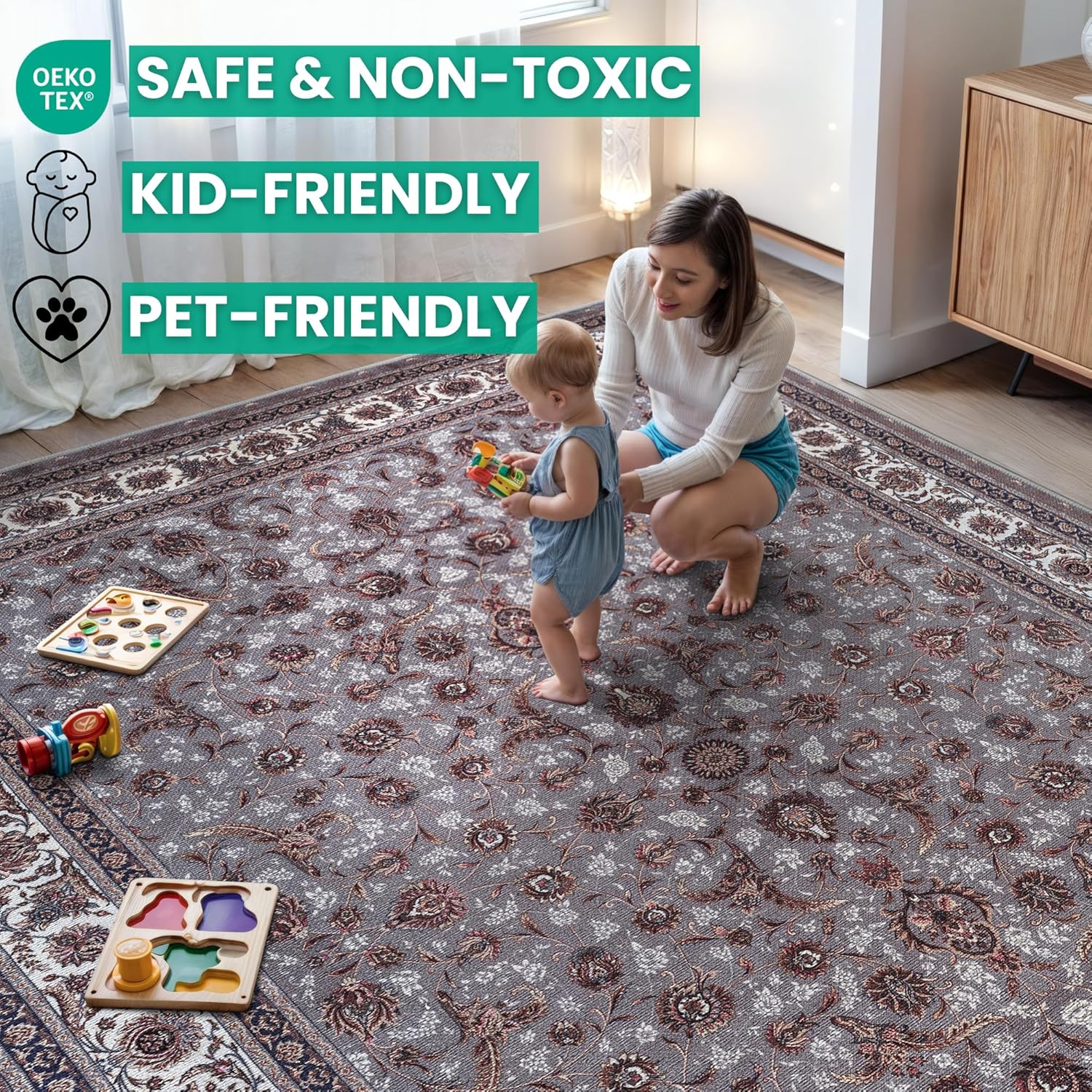 Bloom Rugs Washable Non-Slip 8' x 10' Rug - Slate Gray Traditional Oriental Area Rug for Living Room, Bedroom, Dining Room, and Kitchen - Exact Size: 8' x 10'