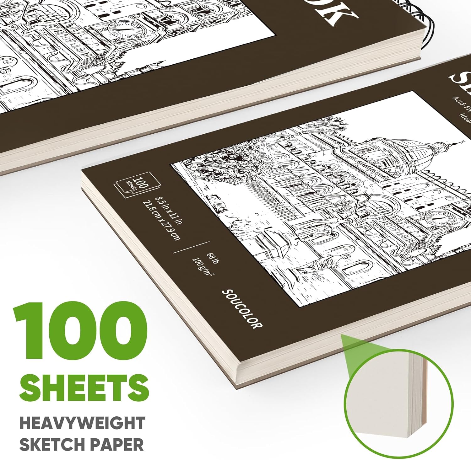 Soucolor Sketchbook 8.5x11 Hard Cover - 100 Sheets Spiral Bound Sketch Pad 8.5" x 11", 68lb/100gsm Thick Drawing Paper 8.5" x 11", Acid-Free Art Notebook for Kids Adults Classroom Teacher Must Have