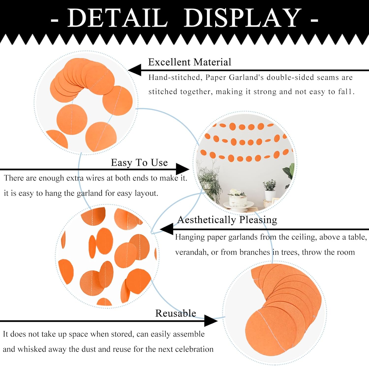 MerryNine Paper Garland 5 Pack, 65 Ft Glitter Paper Garland Circle Dots Hanging Decor, Banner for Baby Shower, Birthday, Nursery Party Decor (Orange)