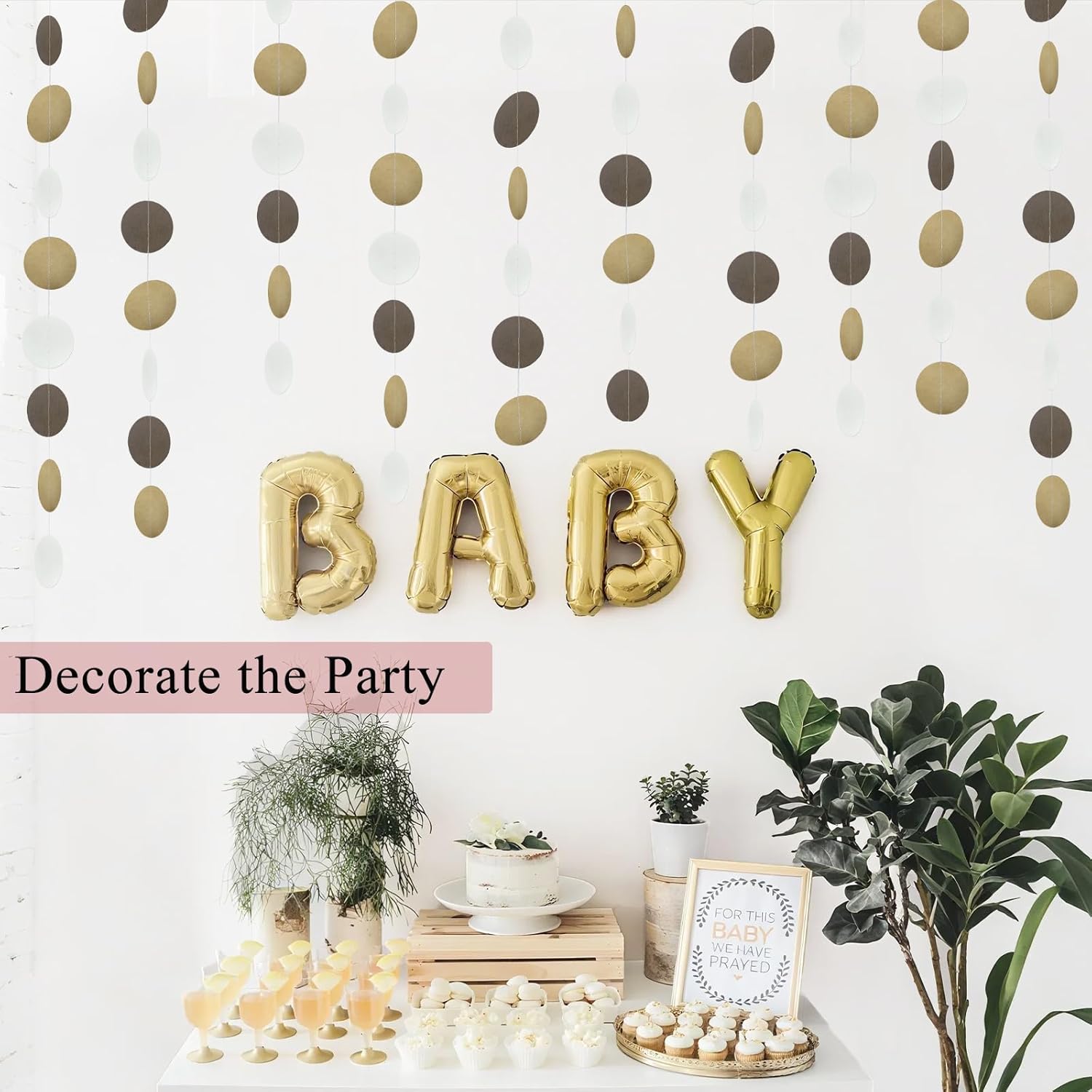 MerryNine Paper Garland 5 Pack, 50ft Glitter Paper Garland Circle Dots Hanging Decor, Banner for Baby Shower, Birthday, Nursery Party Decor (Brown Kraft Beige)
