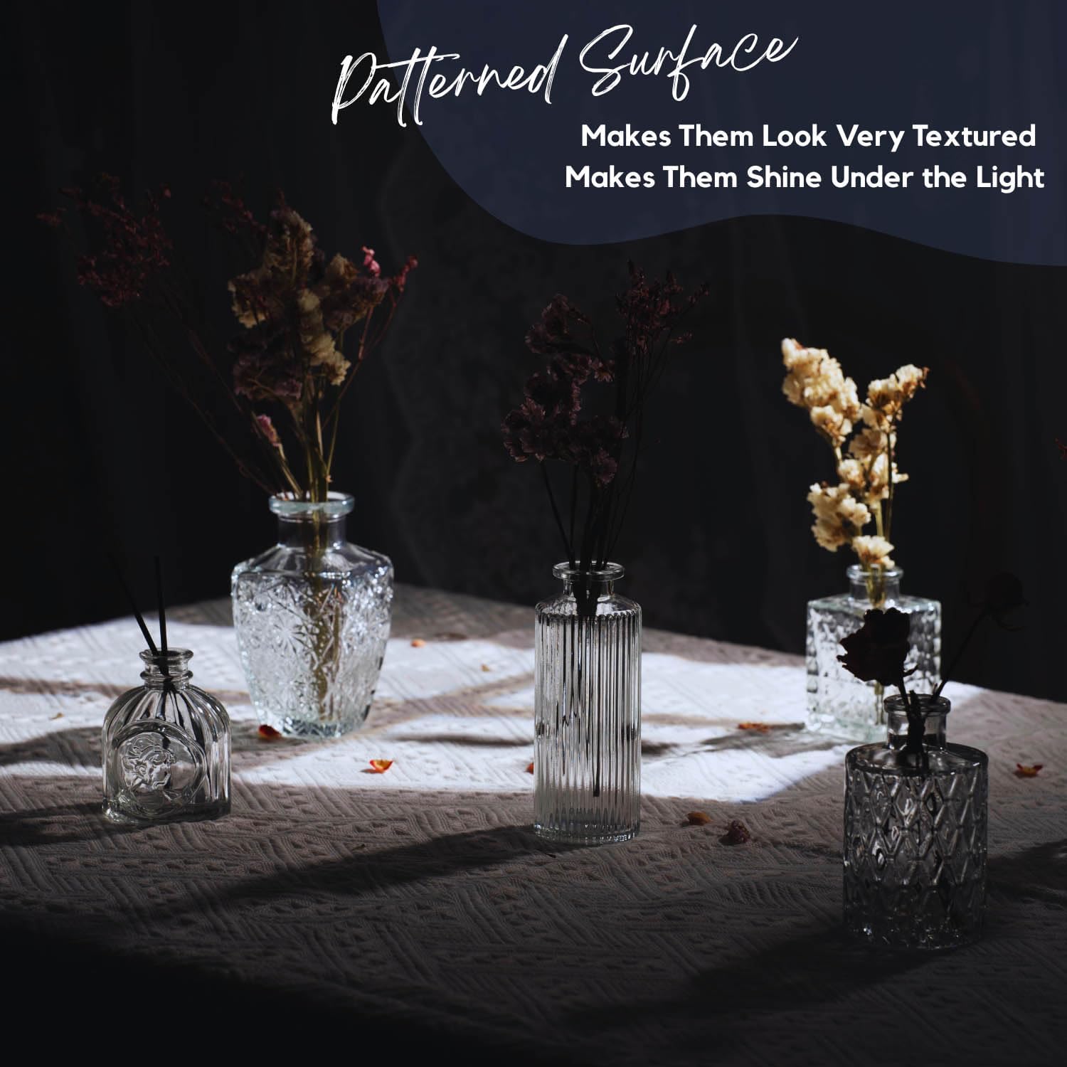 - **【4 Versatile Styles】Mix & Match for Any Theme!** Unique assorted designs (e.g. ribbed, geometric, smooth, fluted) work as **glass centerpieces for tables**. Easily coordinate with **baby shower centerpieces**, Christmas decor, or **wedding bud vases**