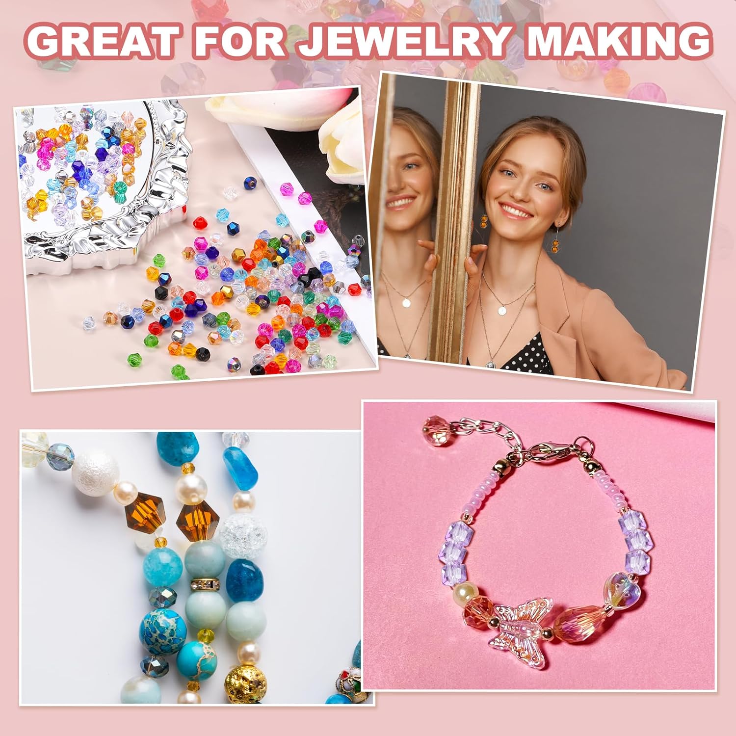 - Advantage: Durable Material: Crafted from quality polished glass, these beads are lightweight, and smooth to the touch, ensuring comfort and safety for prolonged wear. Fade-Resistant Color: with a brilliant shine that resists fading, adding elegance and eye-catching sparkle to your projects. Faceted Design: Expertly cut bicone shape with multi-faceted surfaces for maximum light reflection, ensuring stability in jewelry settings without slipping or loosening.