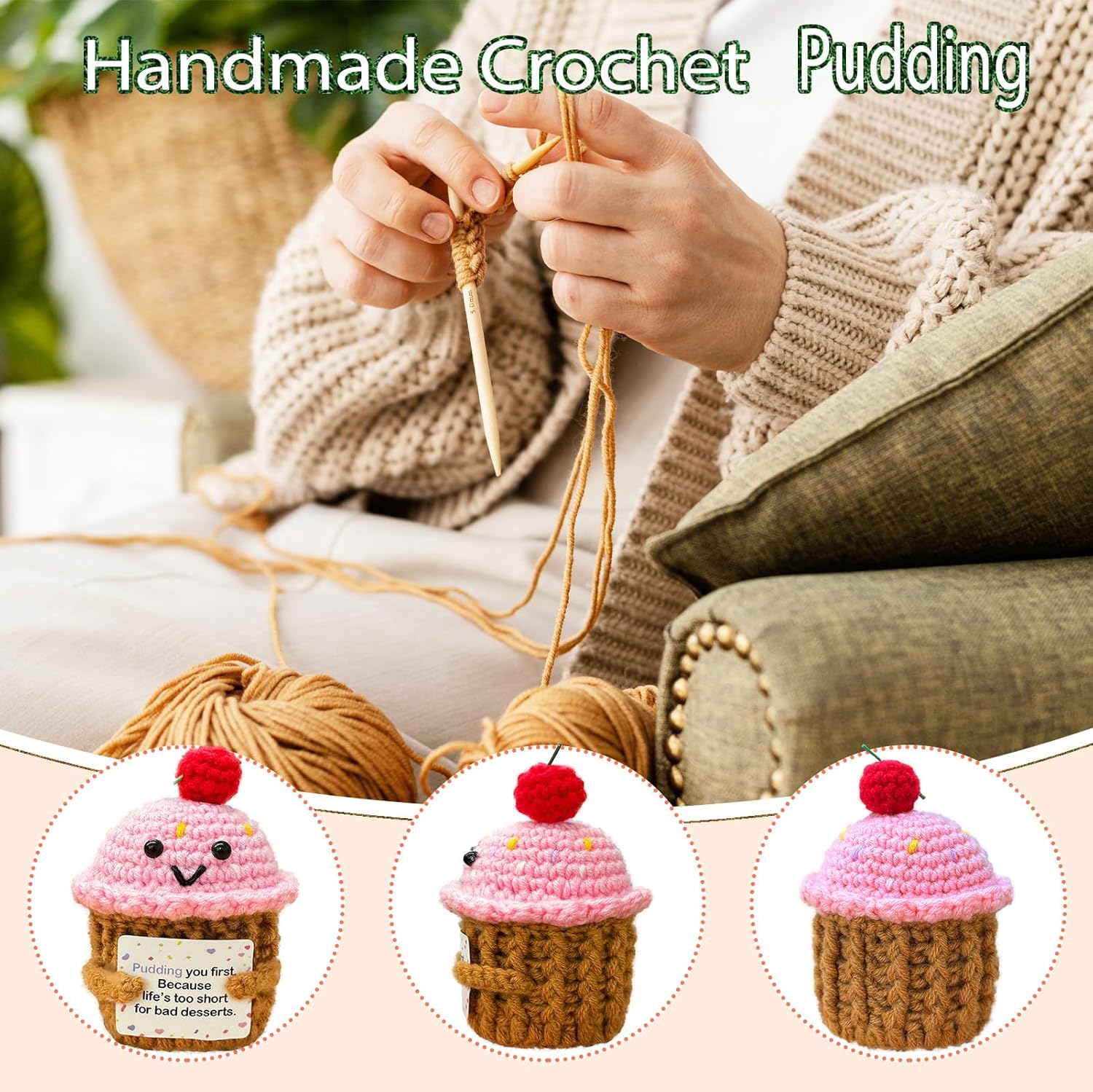 Emotional Support Crochet Pudding,Sweet Gifts for Women Daughter Sister Friend Student Birthday Graduation,Handmade Pudding Little Reminders Emotional Uplifting Support Mental Health